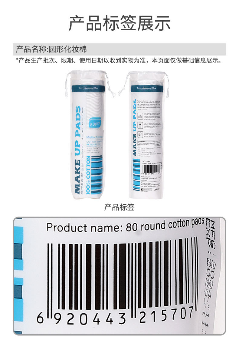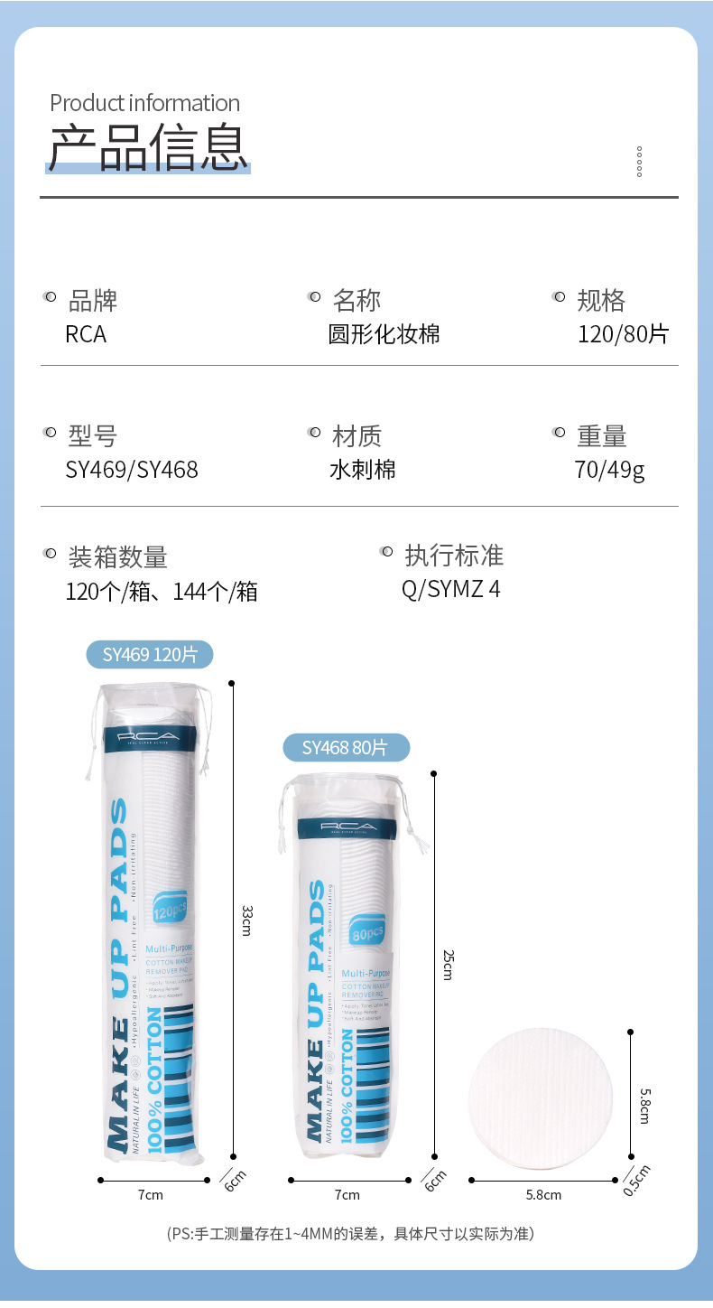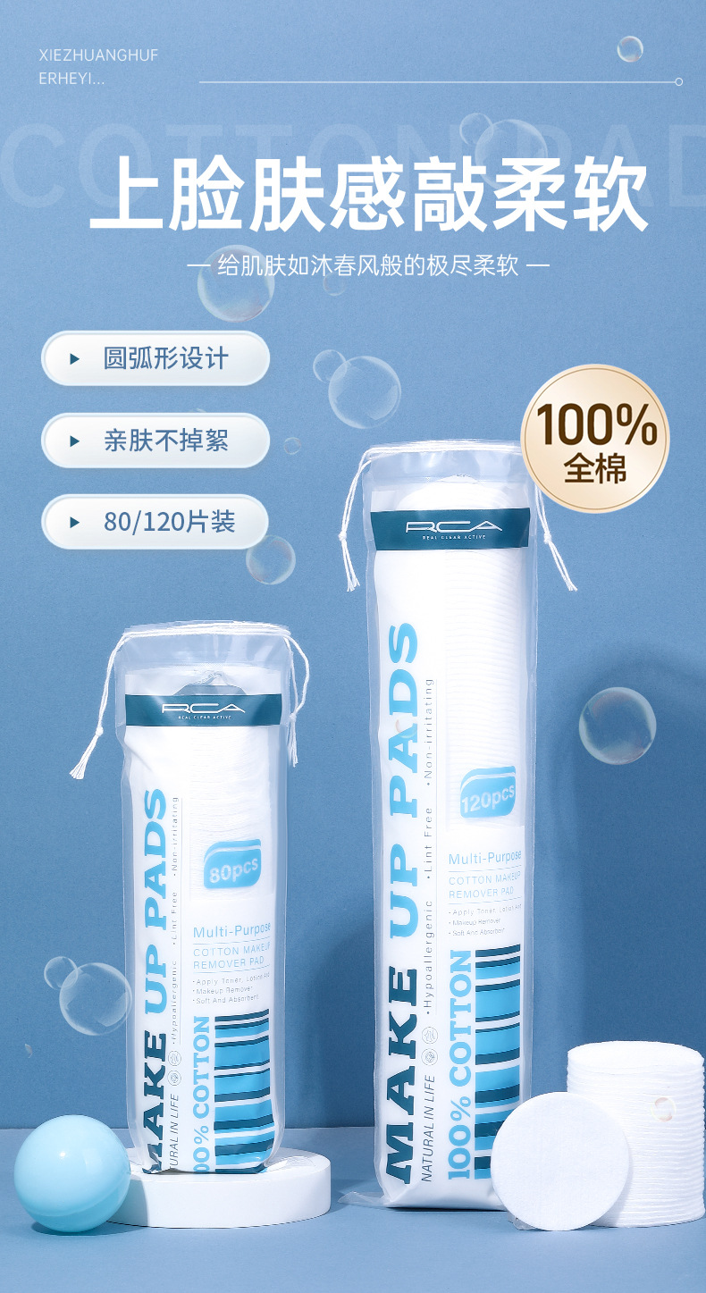 RCA redondo de algodón espincado 120 piezas de algodón sándwich de maquillaje limpiador húmedo de algodón redondo suministro transfronterizo exclusivo SY469