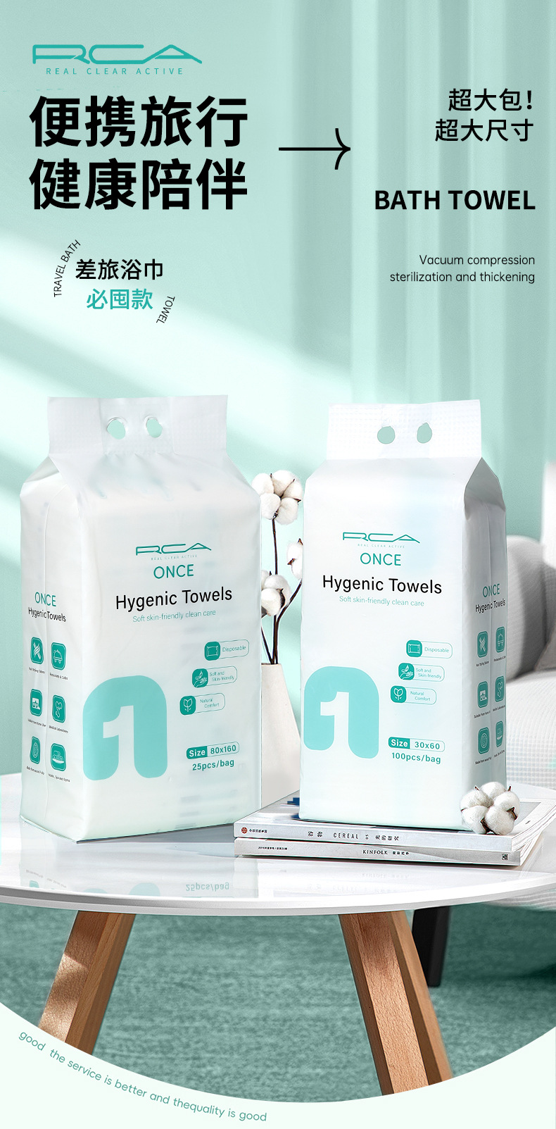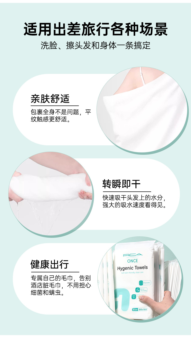 RCA ha ampliado un paquete completo de toallas de baño desechables, toallas de baño 100 piezas, toallas de limpieza facial portátiles de viaje, exclusivamente transfronterizas.