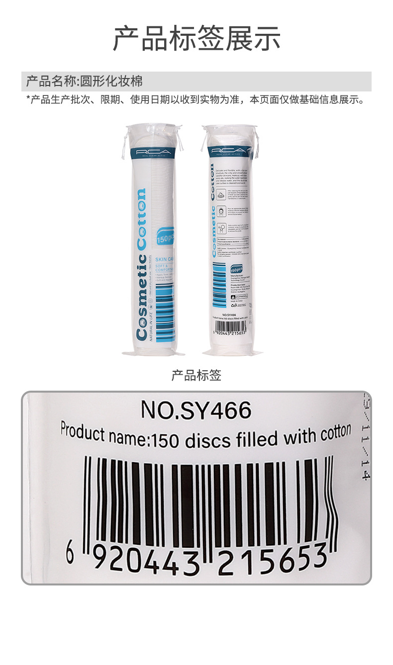 RCA algodón redondo sándwich 100 piezas de paquete de desmaquillaje de dos lados, aplicación húmeda de algodón redondo a través de la frontera exclusiva SY466