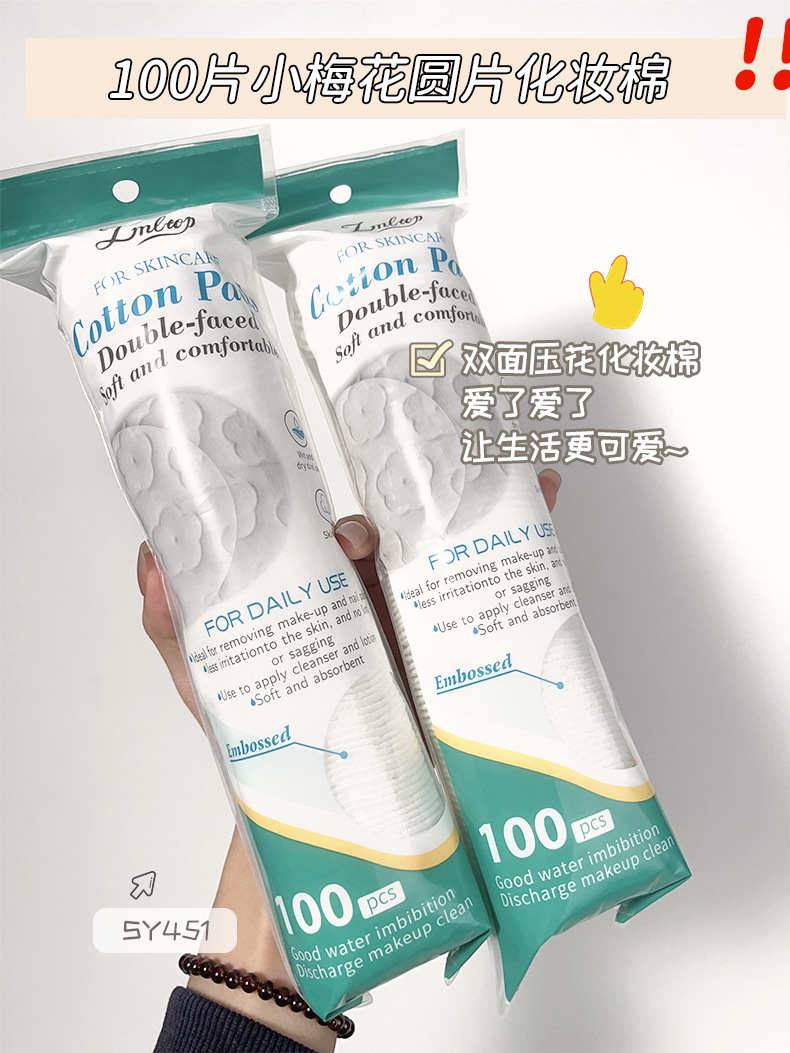 LMLTOP flor de ciruela en relieve algodón maquillaje redondo 100 piezas de algodón redondo, limpieza húmeda de algodón redondo SY451