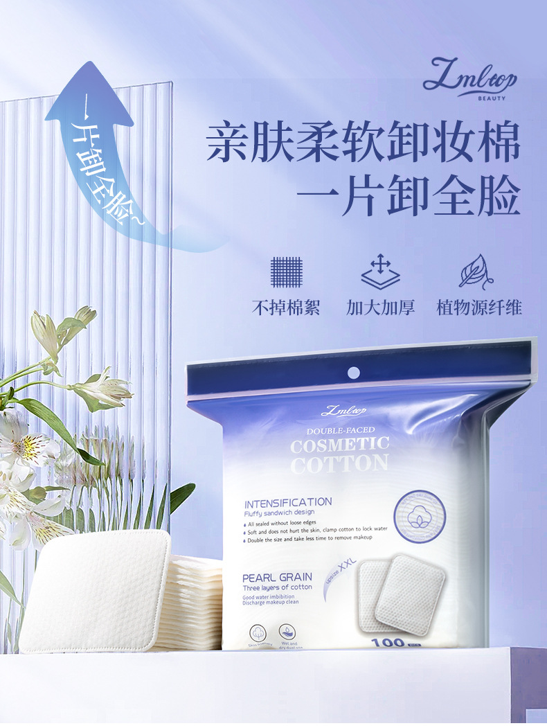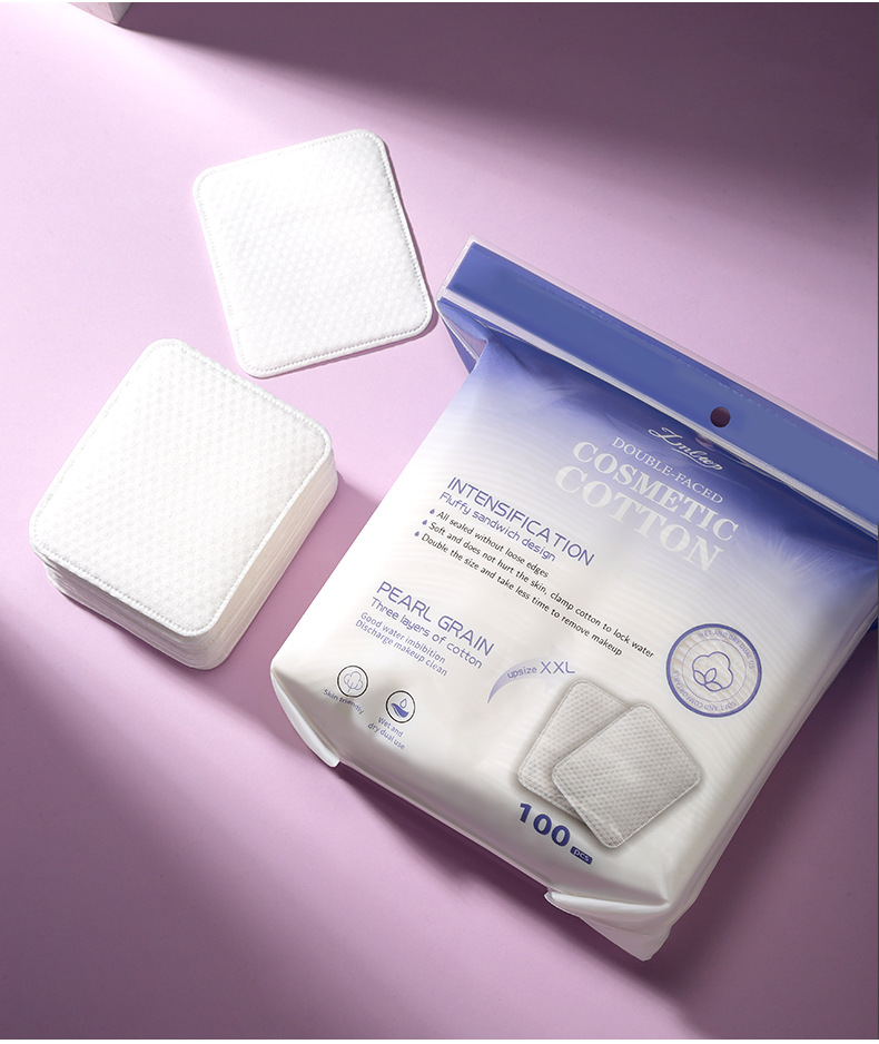 LMLTOP aumentó el algodón maquillaje de patrón de perlas, 100 piezas de algodón maquillaje de sándwich para la piel, suministro transfronterizo exclusivo de algodón SY465