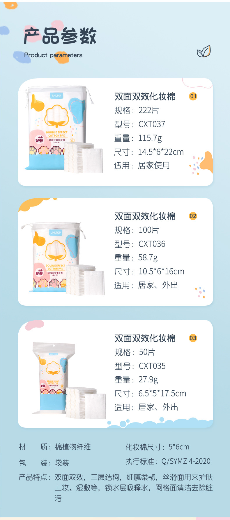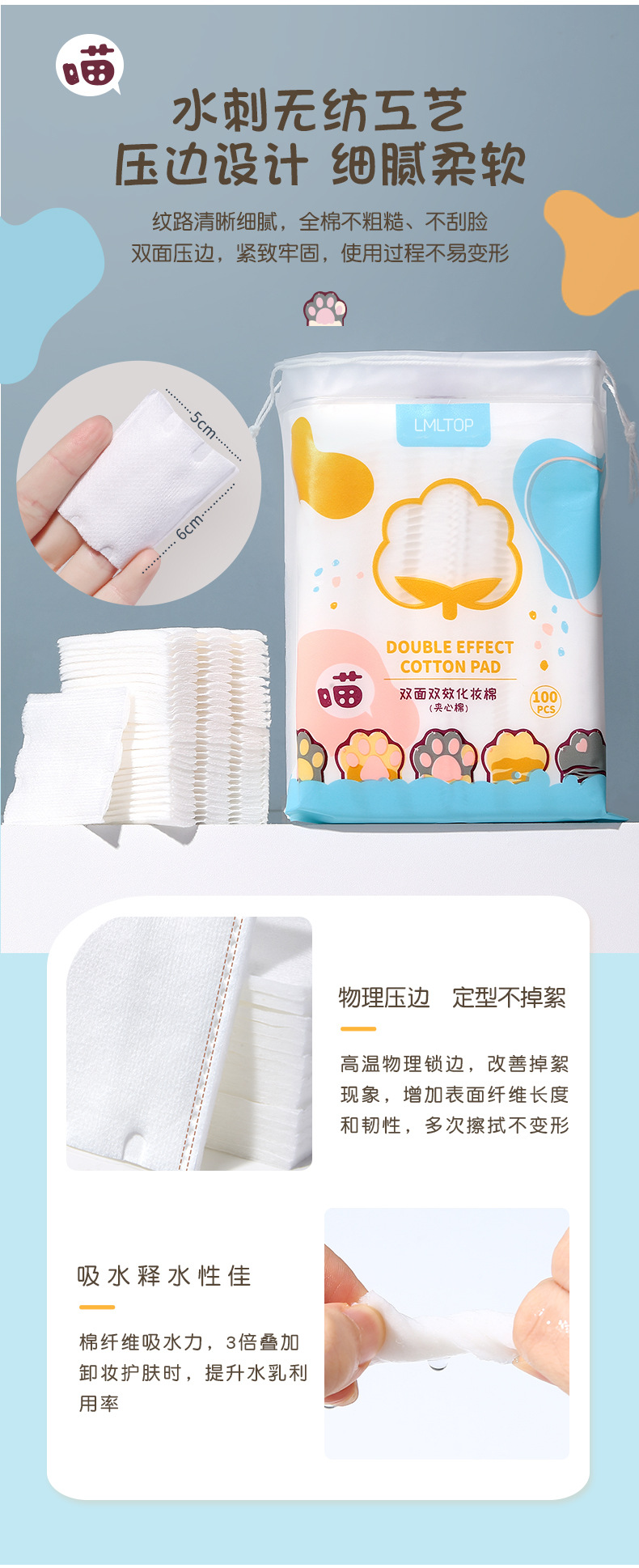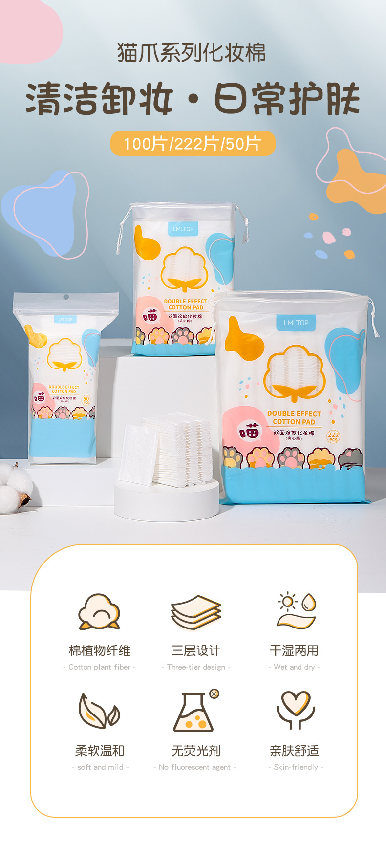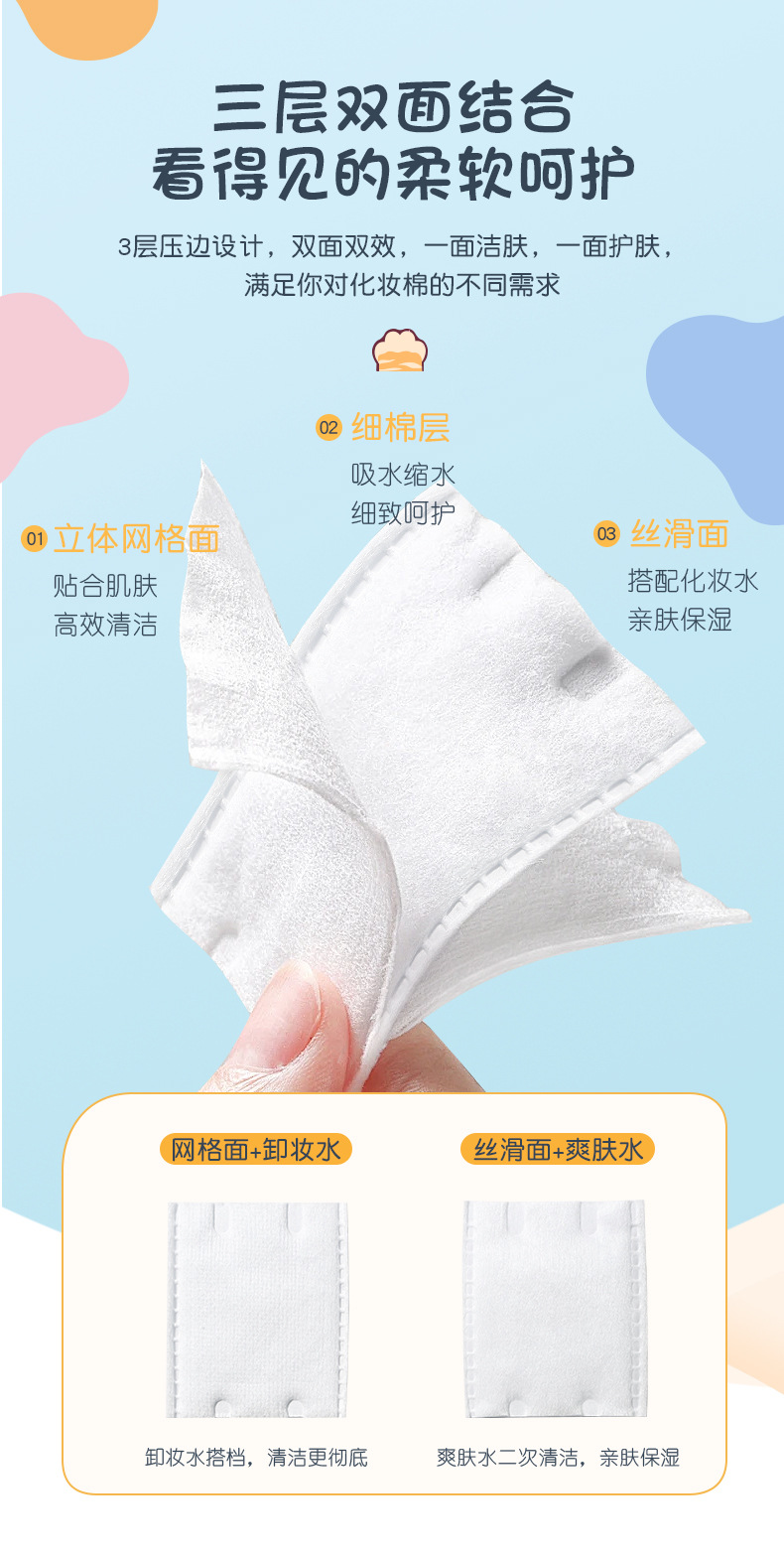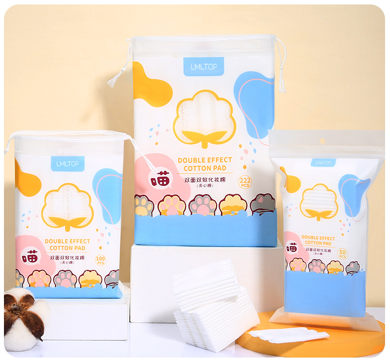 LMLTOP dibujos animados garras de gato 222 piezas de algodón de maquillaje de doble cara espesa hoja de algodón de maquillaje húmedo