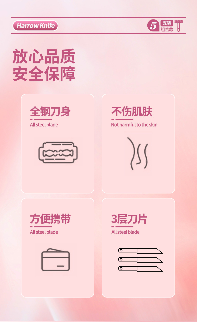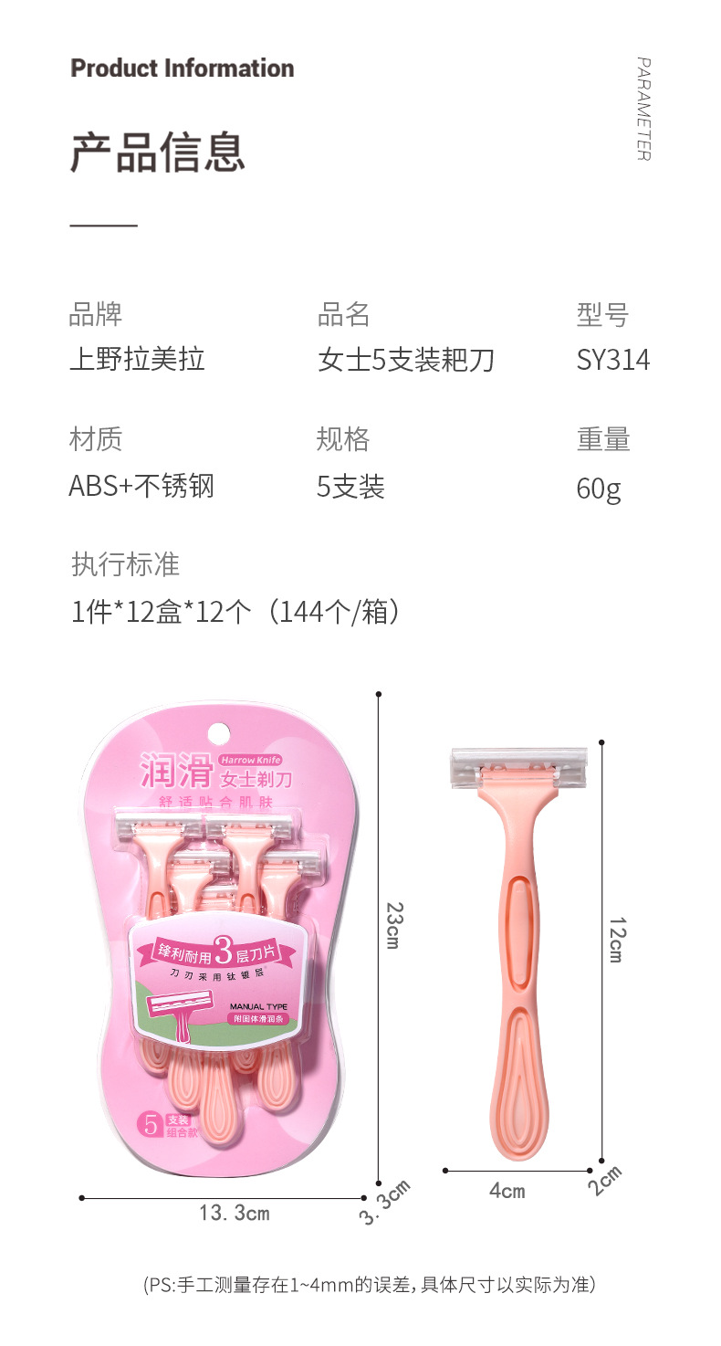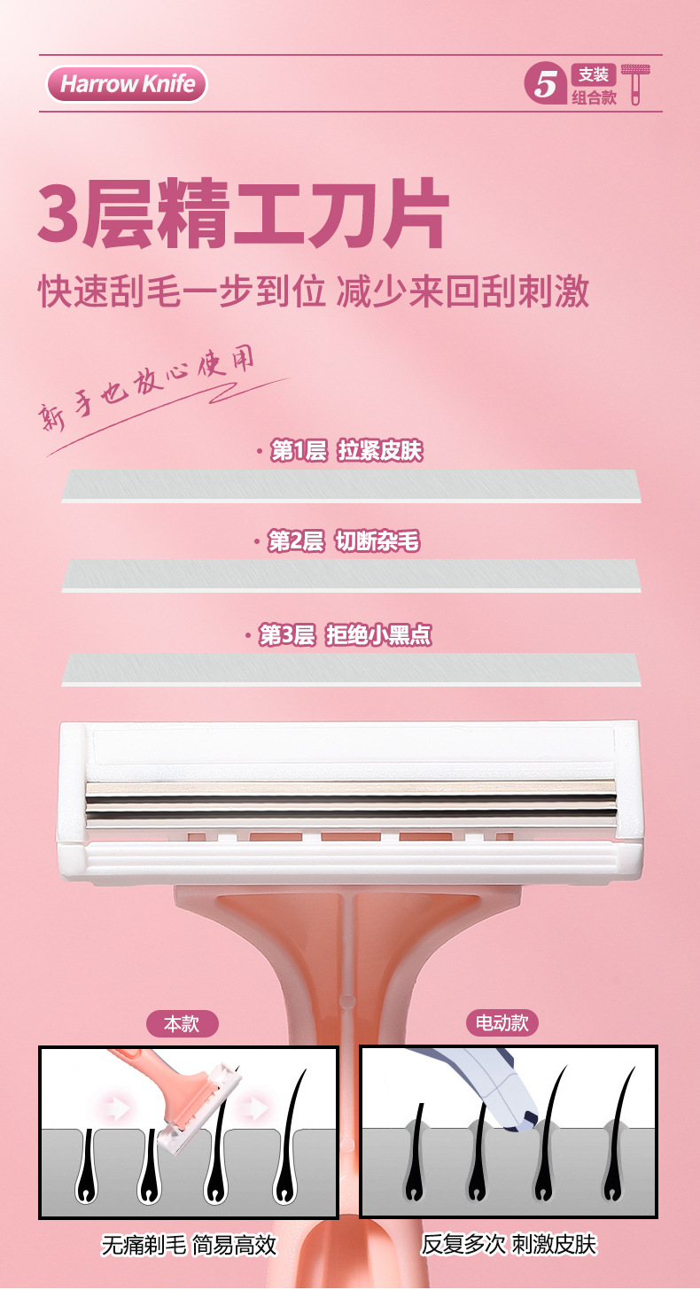 LMLTOP damas raspadora de afeitar cinco paquetes afilados raspadora en forma de T tres cuchillas raspadora de afeitar SY314