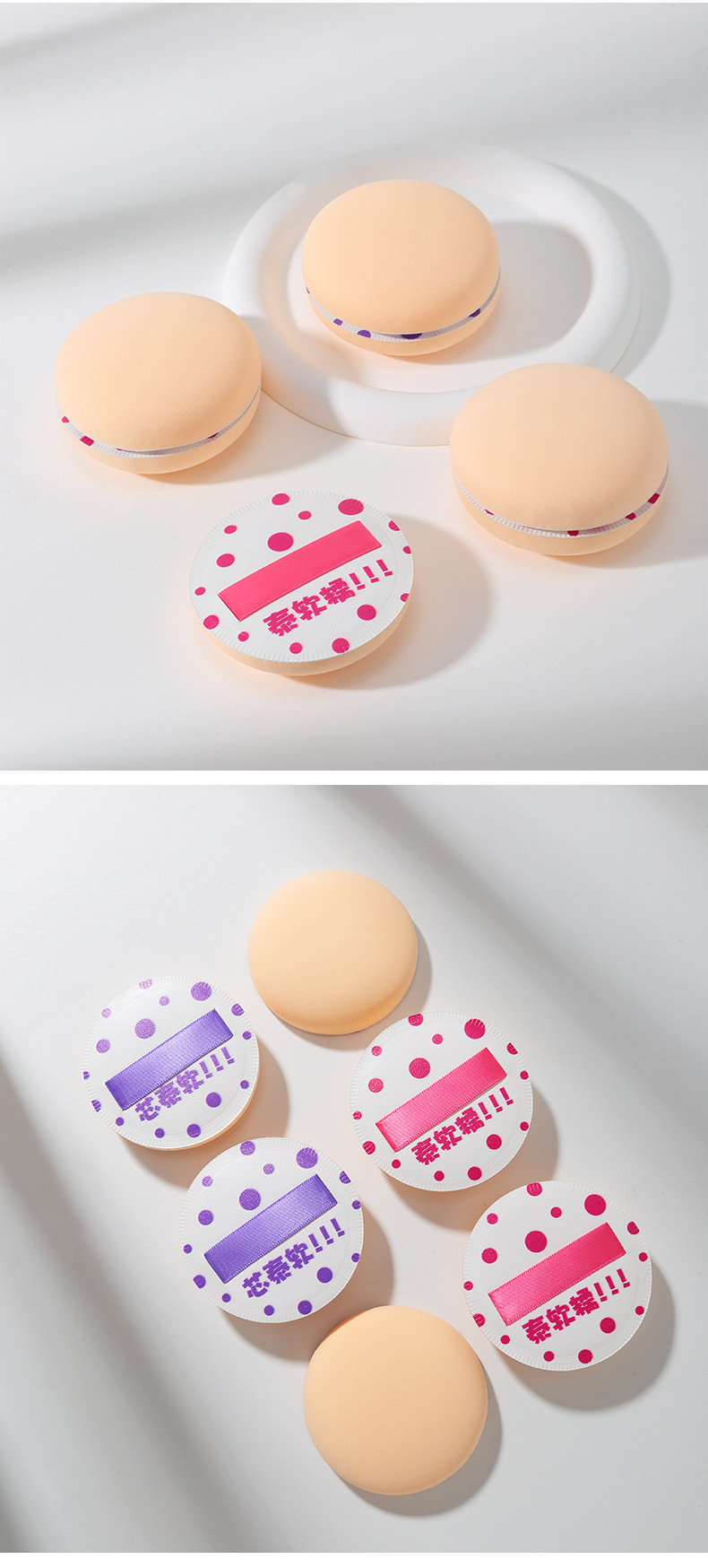 LMLTOP polvo de marshmallow de punto de onda 2 paquetes de polvo de maquillaje de seda ensanchado para uso seco y húmedo LLT17