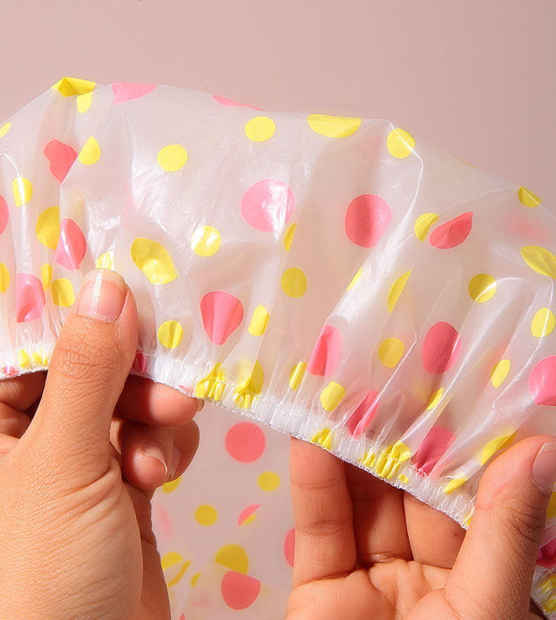 Yilingmeng lindo Polka Dot gorro de ducha impermeable solo EVA baño adulto a prueba de polvo a prueba de aceite a prueba de humo gorro de pelo L503