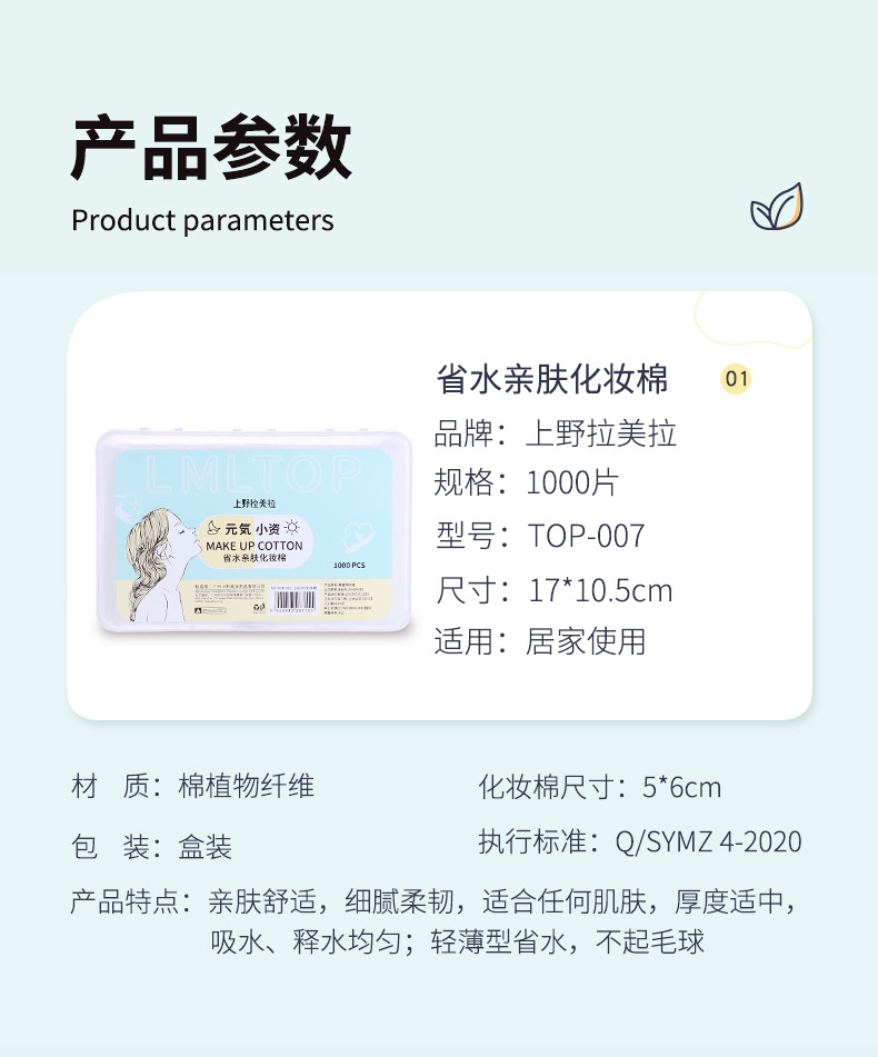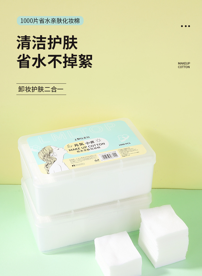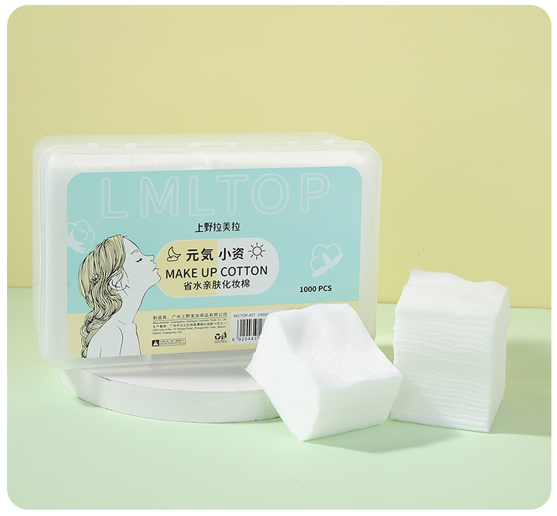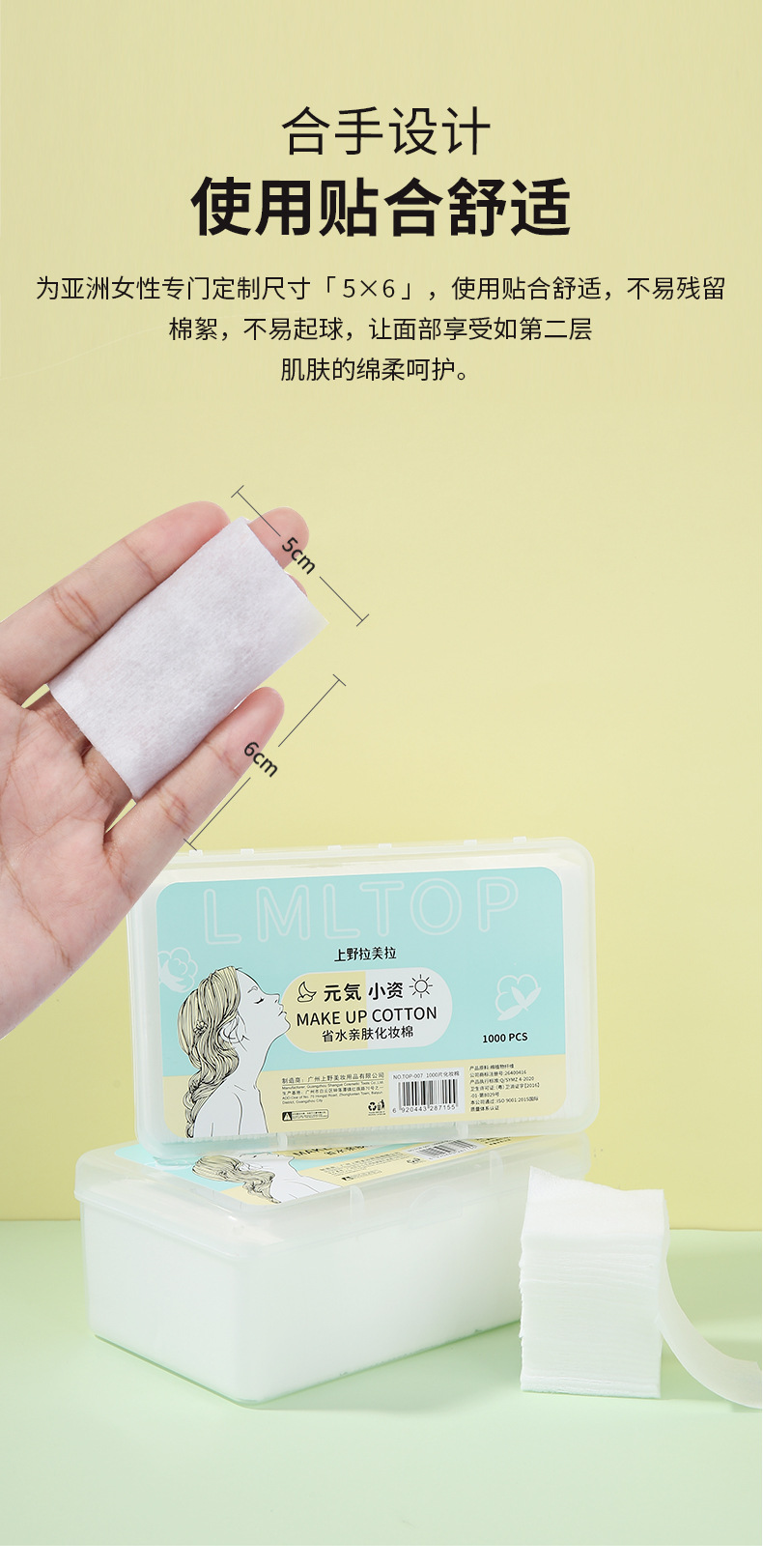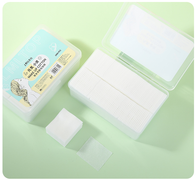 LMLTOP delgada compresa húmeda de ahorro de agua de algodón cosmético 1000 piezas de algodón de limpieza no tejido removedor de uñas pieza de algodón TOP-007
