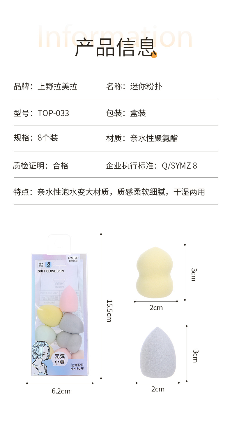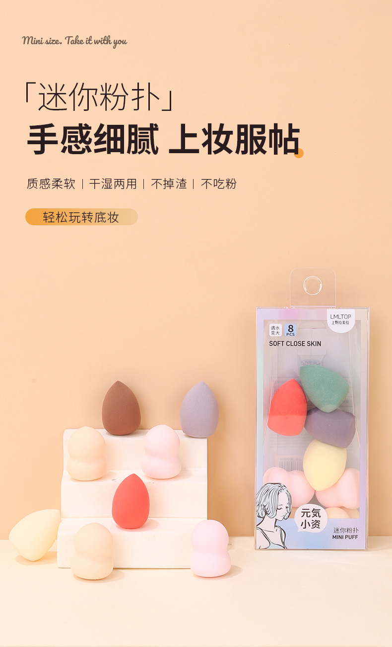Lmltop color mezclado mini puff 8 paquete mini gota de agua maquillaje belleza huevo traje top-033