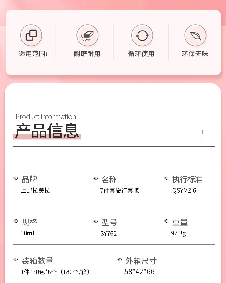 LMLTOP 50ml botella de viaje 7-piece set cosmético sub-botella de spray portátil botella vacía traje SY762