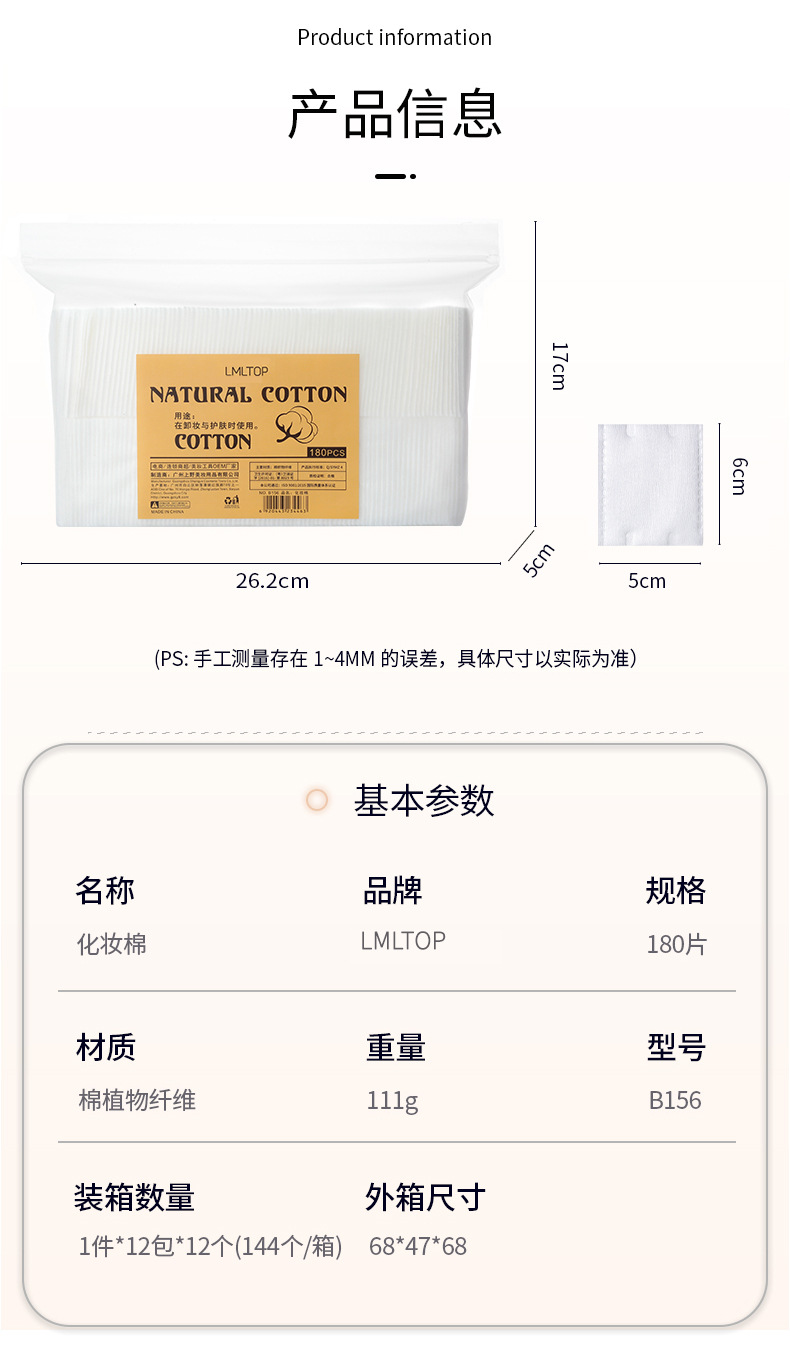 Lmltop maquillaje algodón 180 piezas removedor de maquillaje algodón maquillaje húmedo comprimir maquillaje removedor limpieza belleza herramientas al por mayor b156