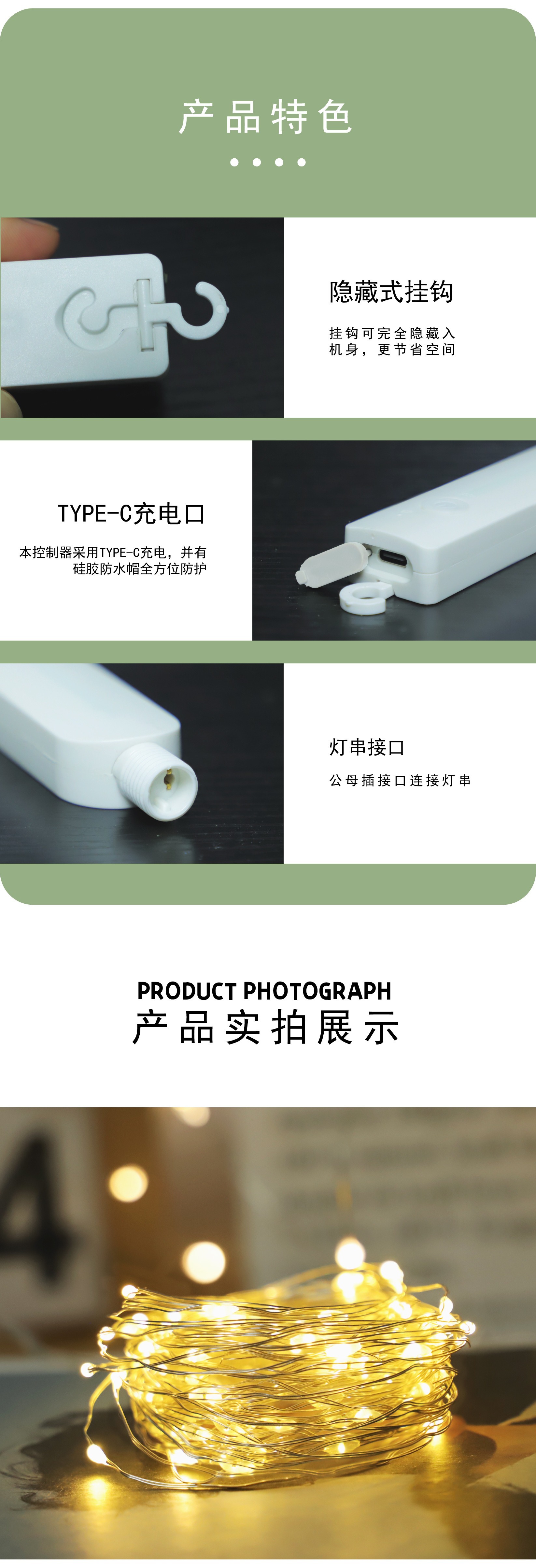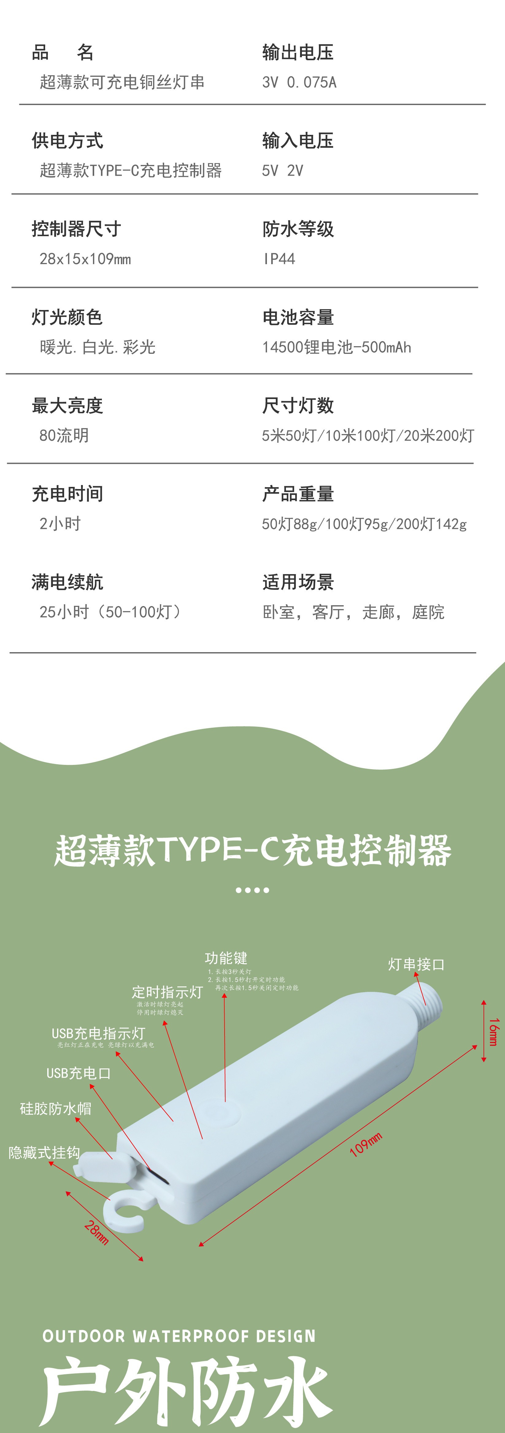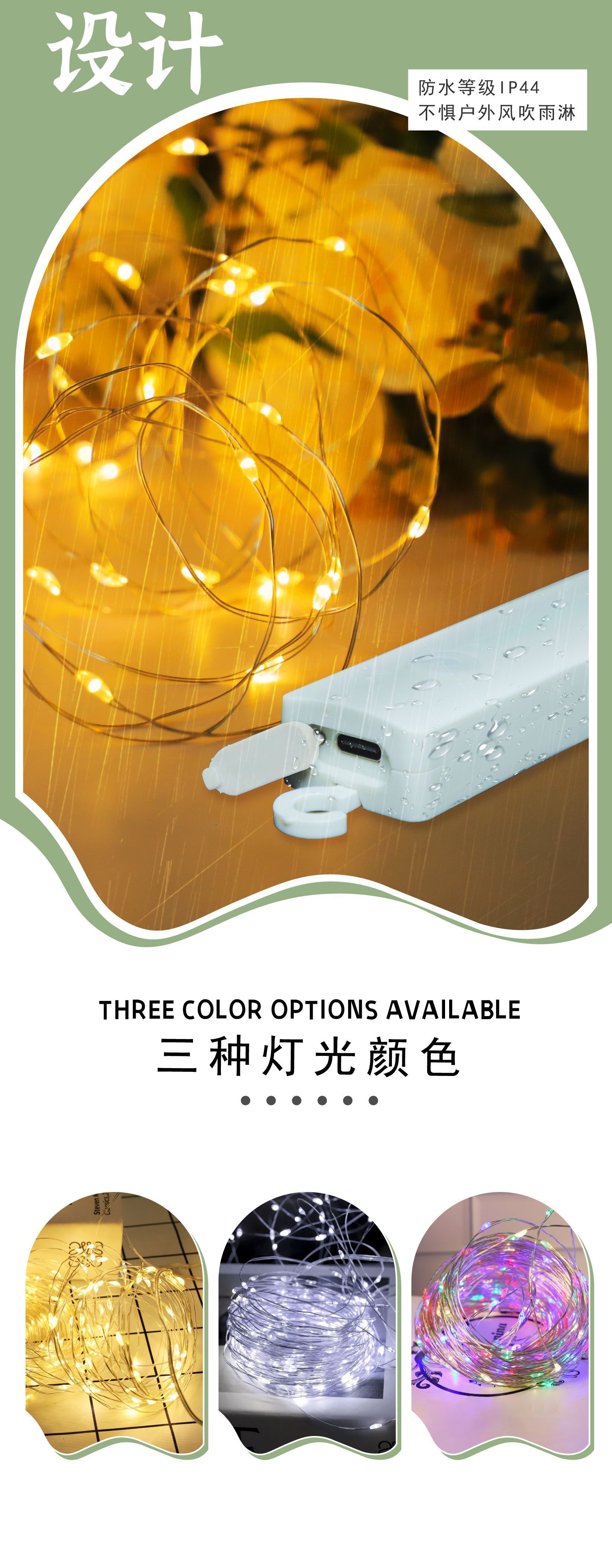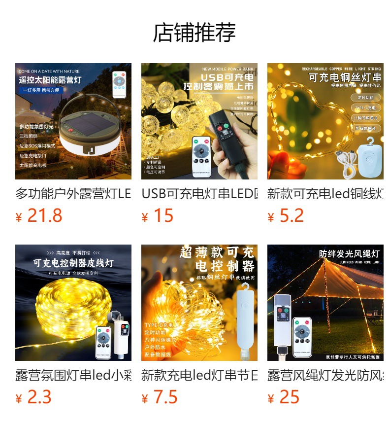 Nuevo diseño de cadena de lámparas recargables de vacaciones decorativas de alambre de cobre transfronterizos de Navidad de color de cadena de lámparas