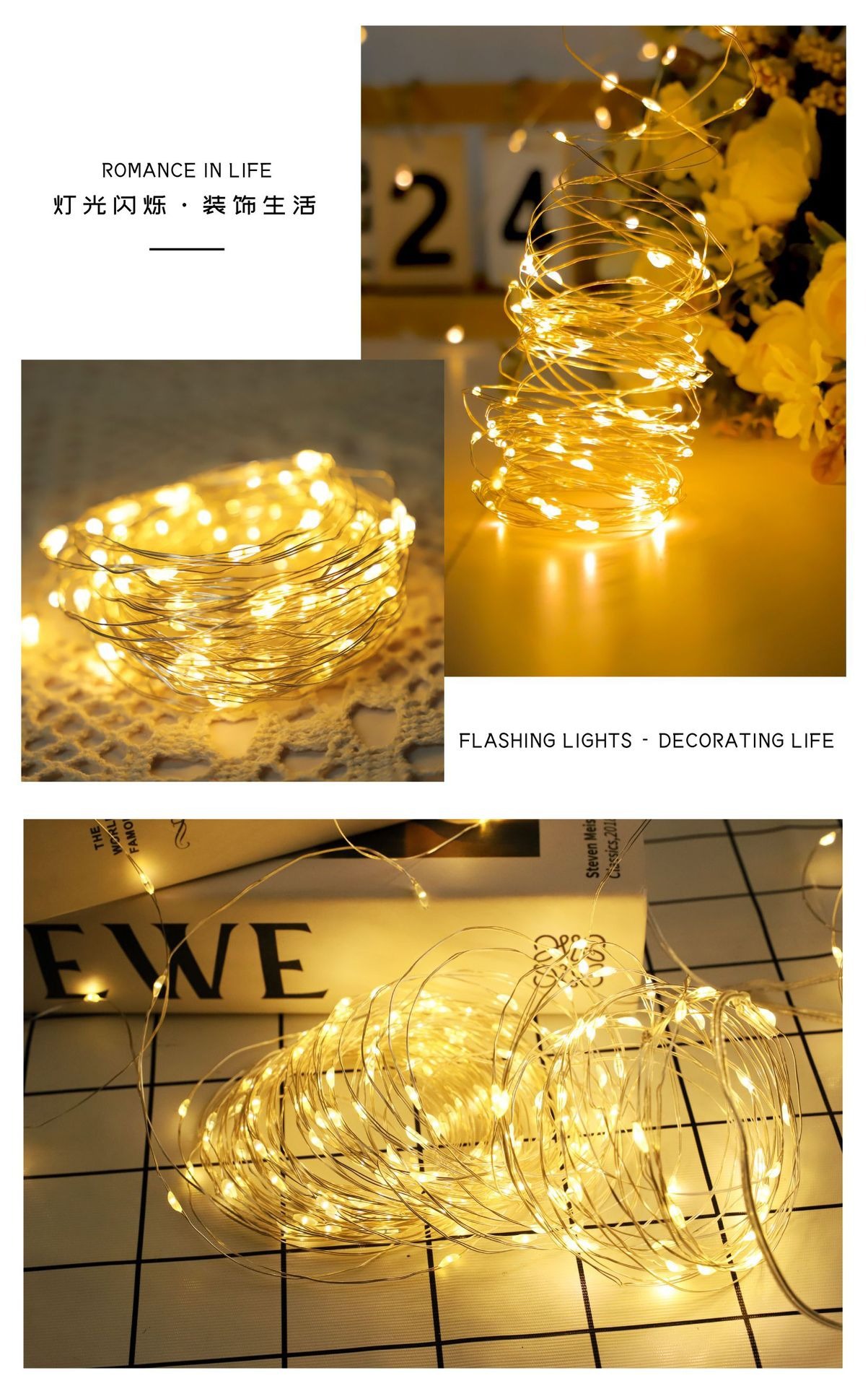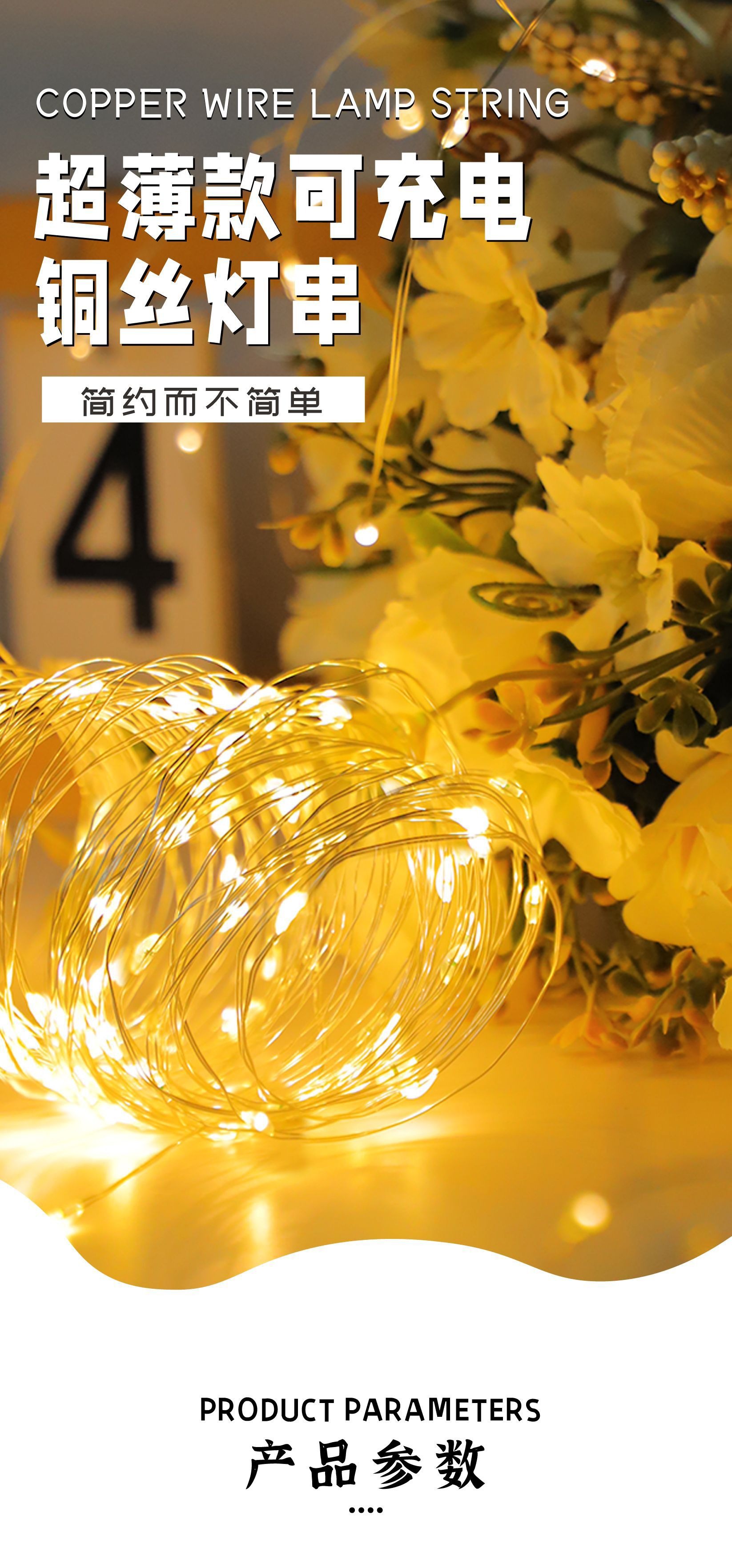 Lámpara de cobre - luz blanca - 20m 200 lámparas