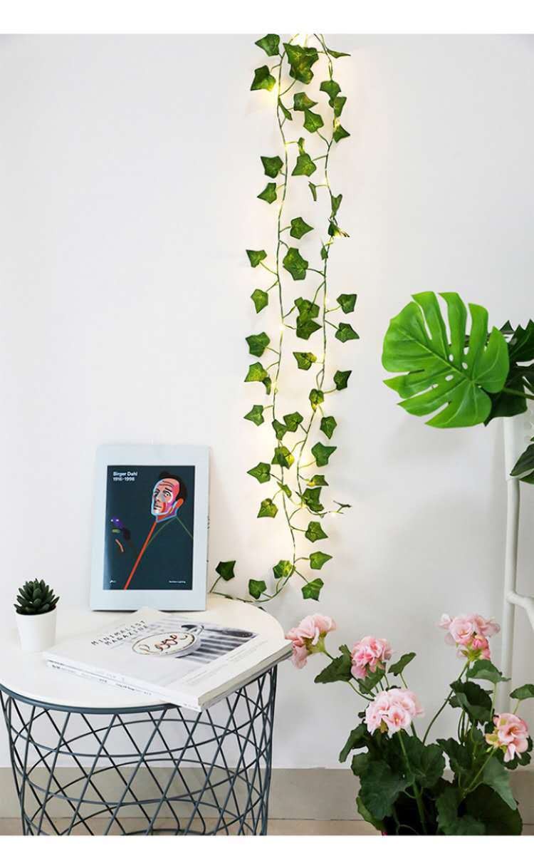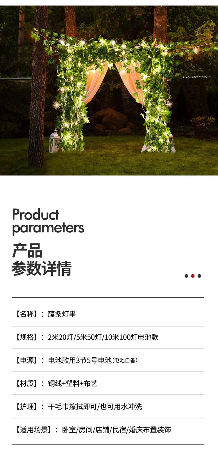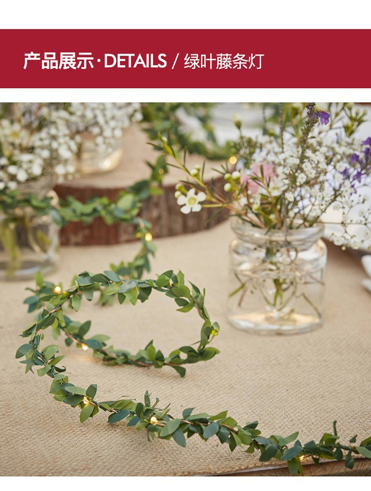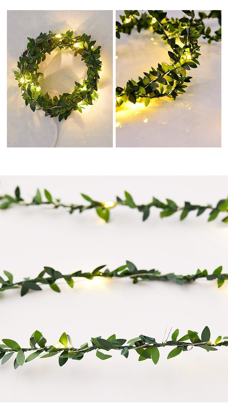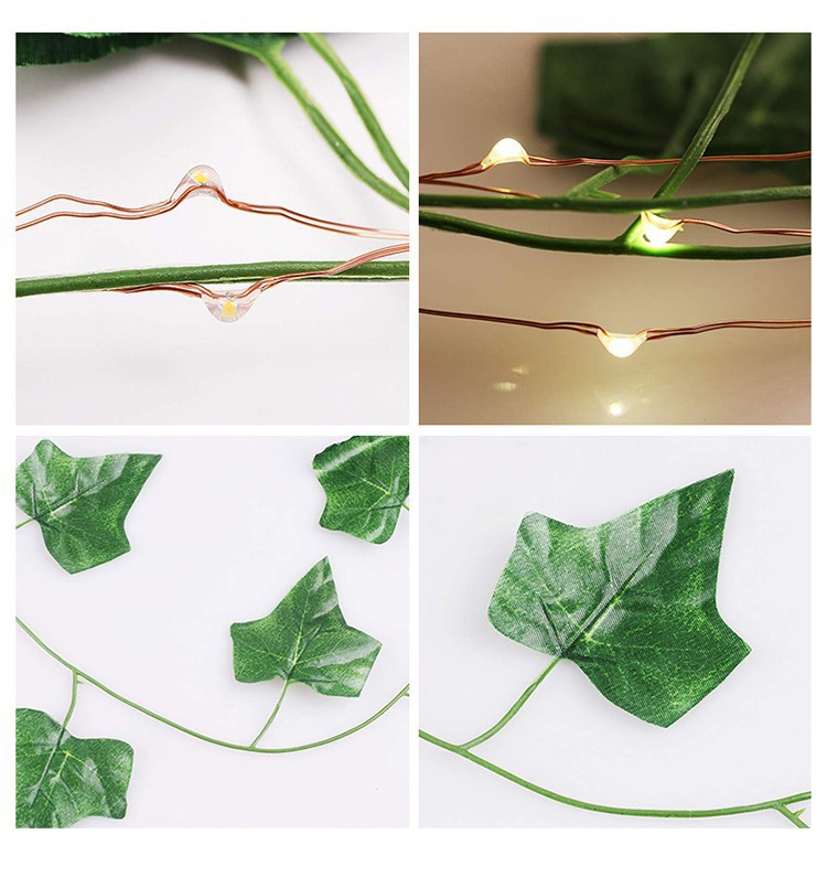 Guirnalda de luces solares con forma de hojas verdes para exteriores, patio, bodas, decoración de hiedra artificial, luces de alambre de cobre