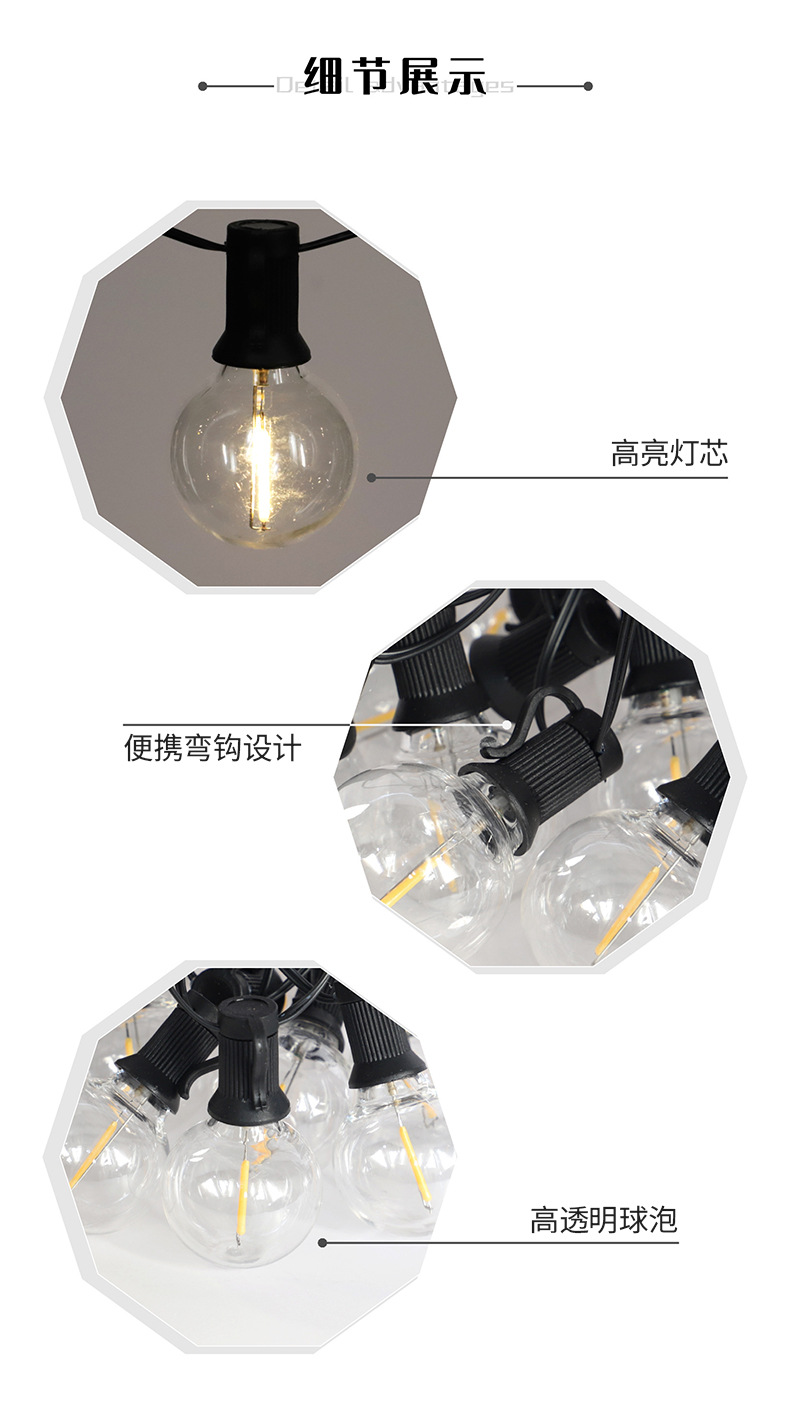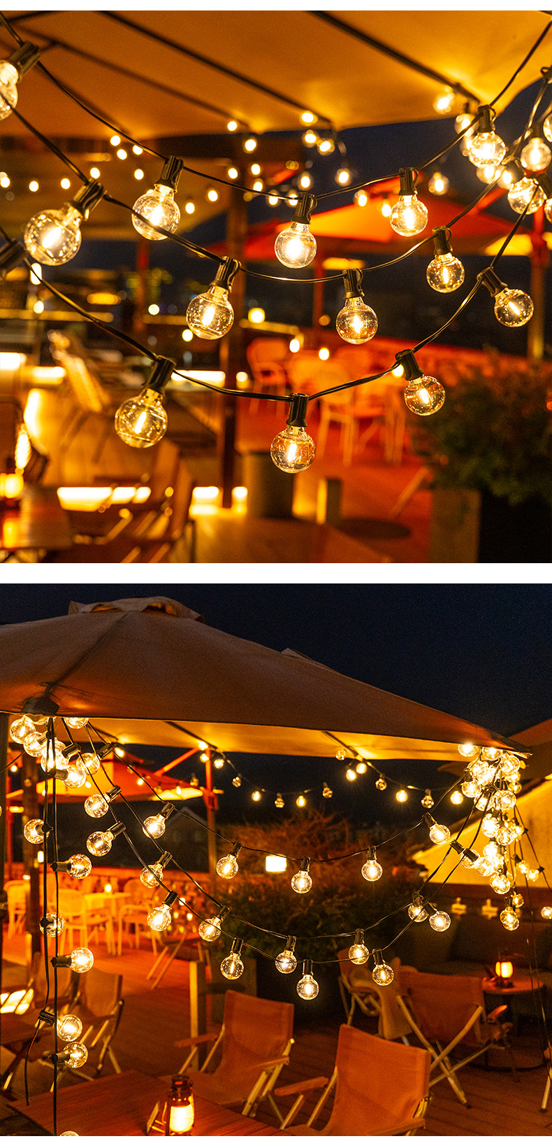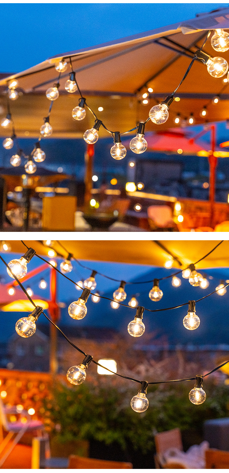 Guirnalda de Luces Solares G40 2025, Luces Decorativas para Exteriores, Guirnalda de Luces LED Inteligente a Prueba de Agua