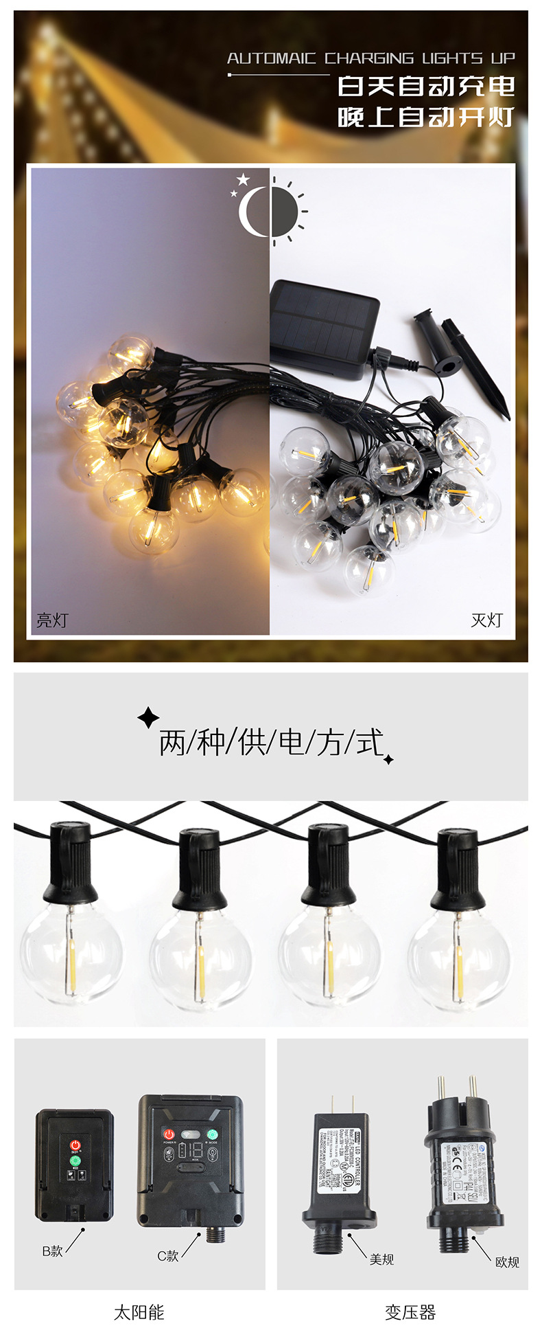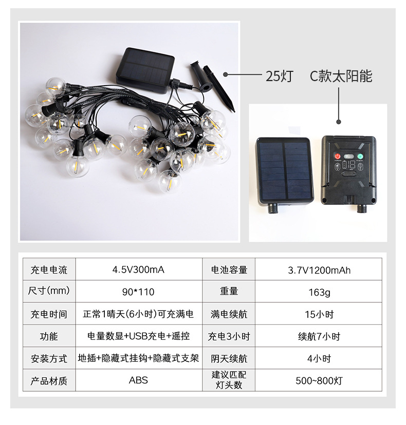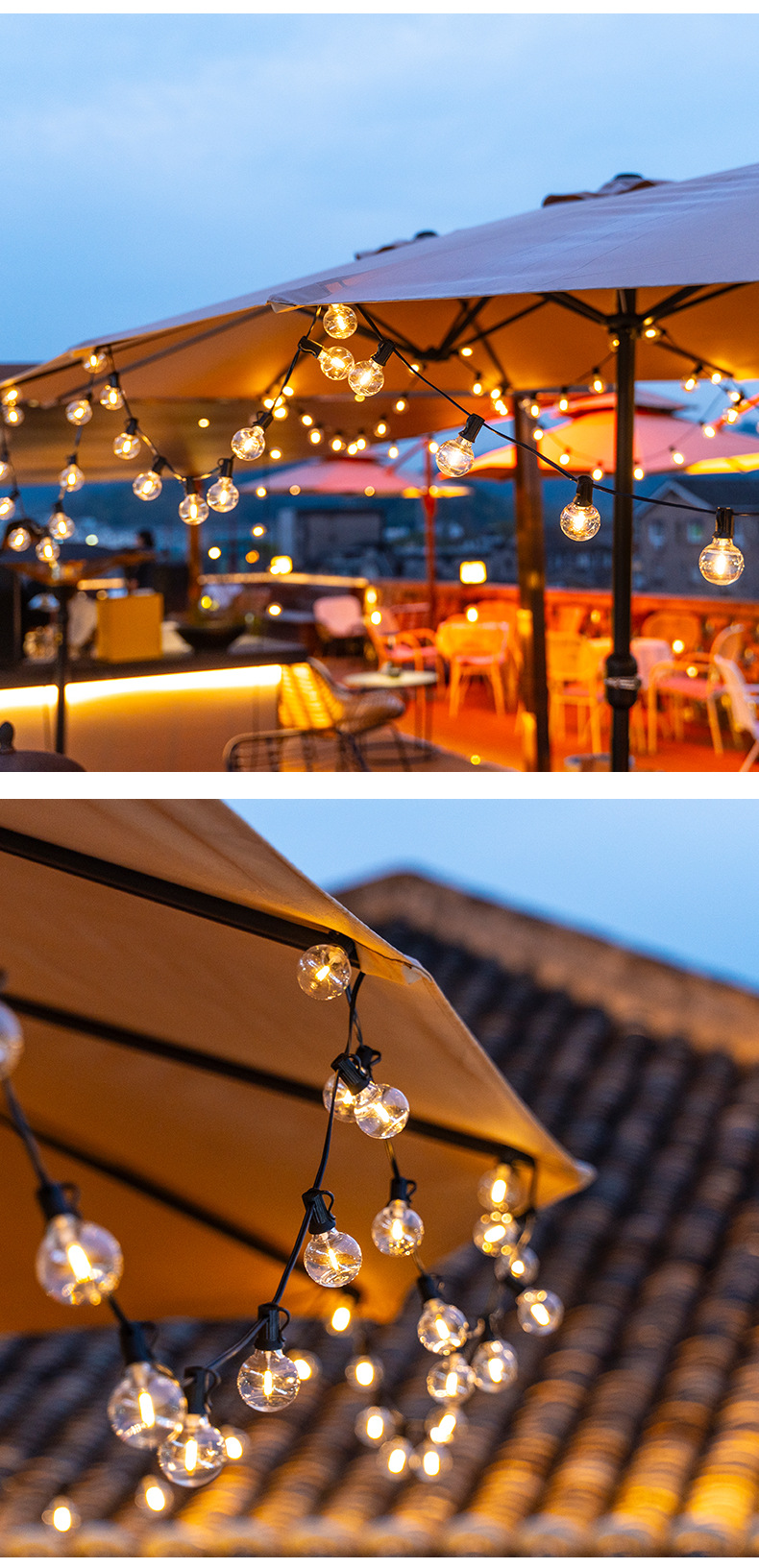 Guirnalda de Luces Solares G40 2025, Luces Decorativas para Exteriores, Guirnalda de Luces LED Inteligente a Prueba de Agua