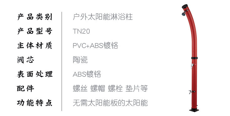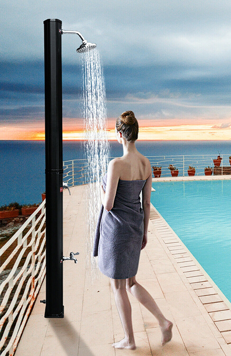 20L cilindro curvo nuevo color plateado PVC columna de ducha solar ducha de jardín al aire libre interruptor de agua caliente y fría