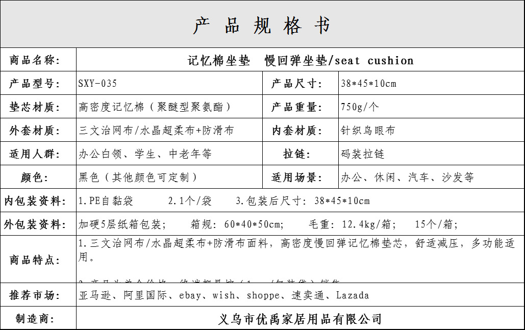 Nuevo cojín de espuma de memoria de rebote lento cojín del asiento cojín de la silla transfronteriza Venta caliente