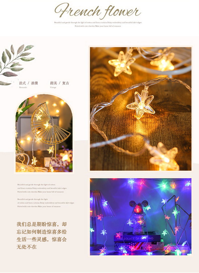Nuevo LED burbuja estrella de cinco puntas Cadena de luz plug-in USB batería Luz de vacaciones al aire libre camping atmósfera decorativa Cadena de luz de colores