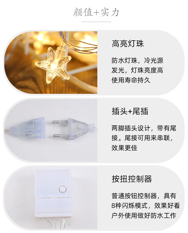 | Color de luz | Blanco cálido 3,0 burbuja estrella de cinco puntas,Color 3,0 burbuja estrella de cinco puntas |
