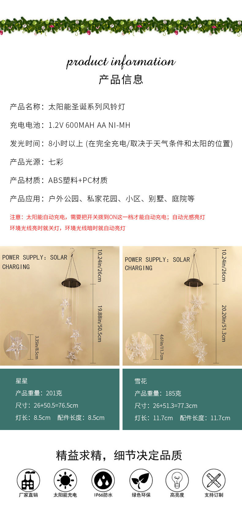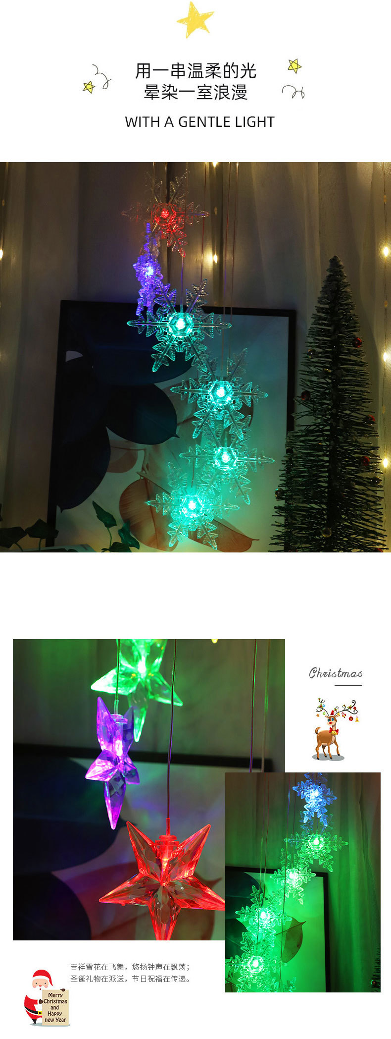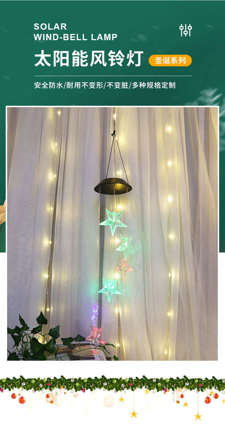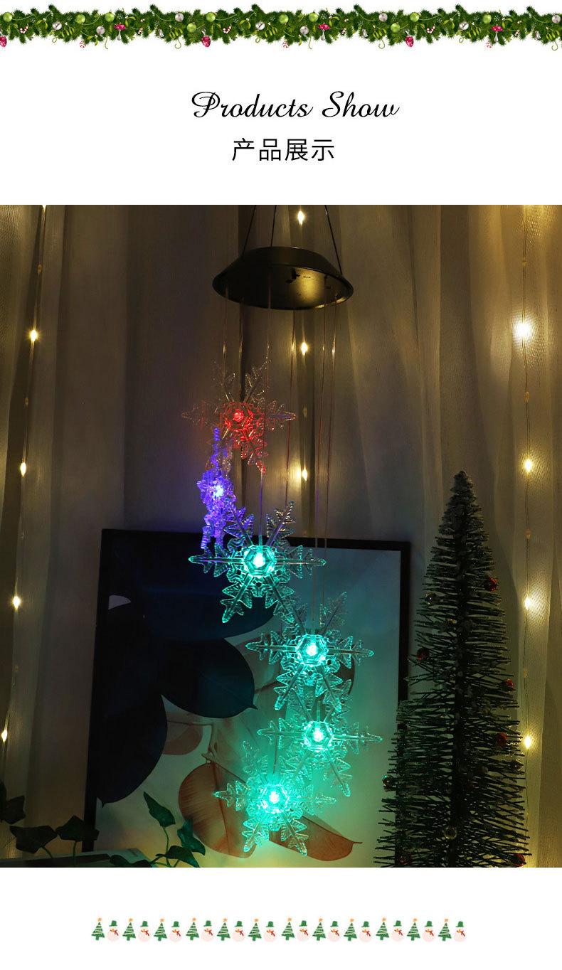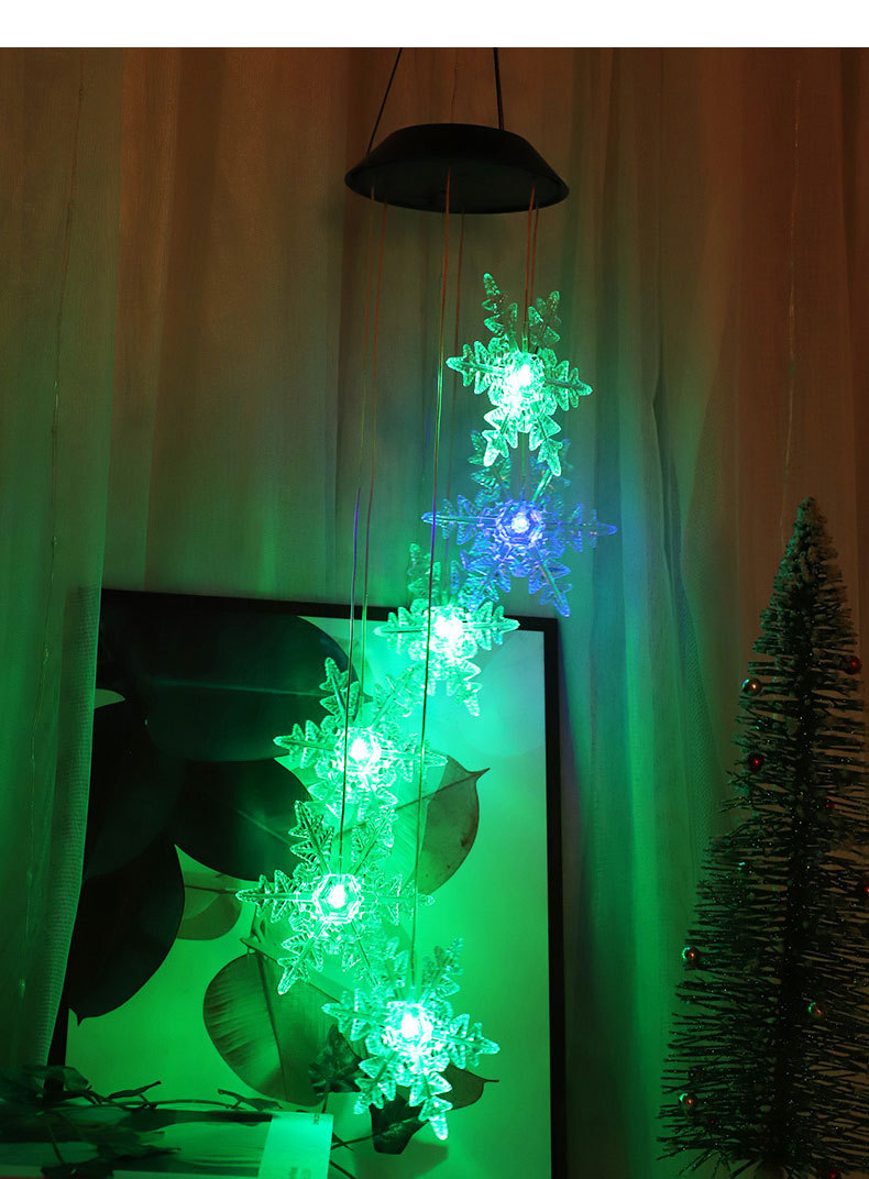 Nueva Navidad atmósfera decoración carillón de viento luz estrella copo de nieve protección del medio ambiente solar led carillón de viento Cadena de luz transfronteriza Venta caliente