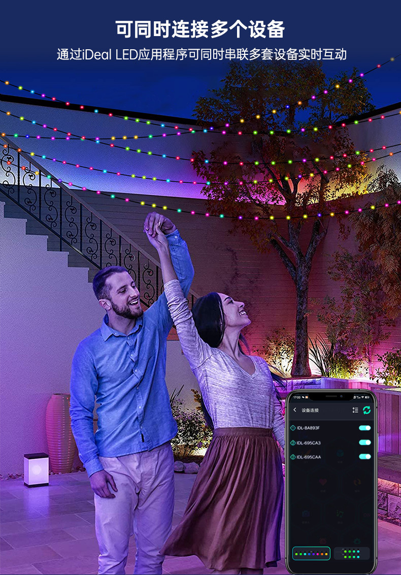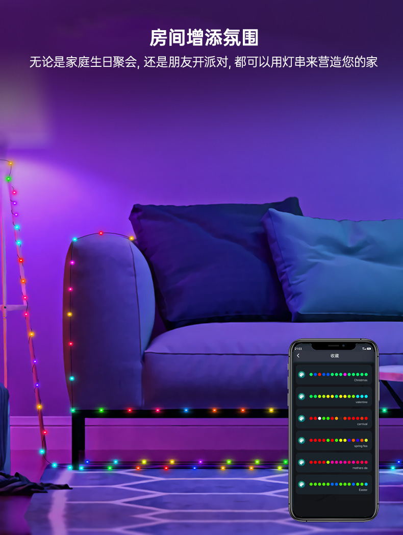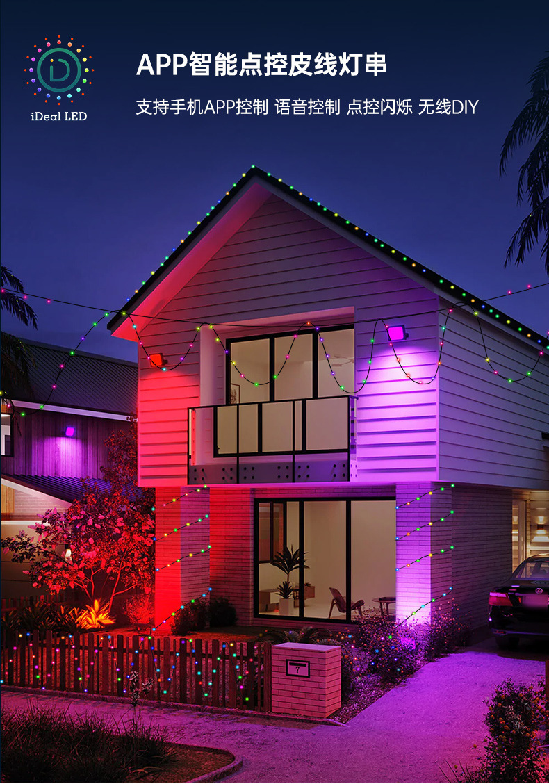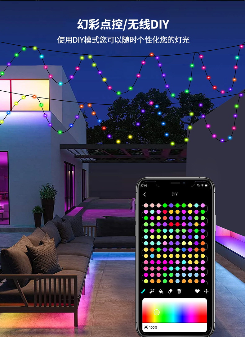 LED color mágico Cable de cuero Cadena de luz de Navidad patio decoración inteligente APP punto de control de cuero cable luz USB impermeable luz de control remoto