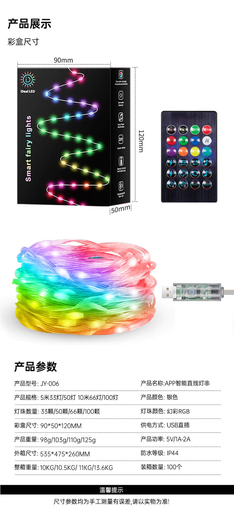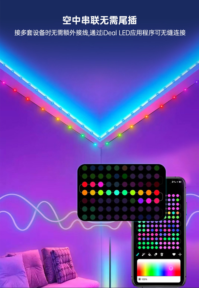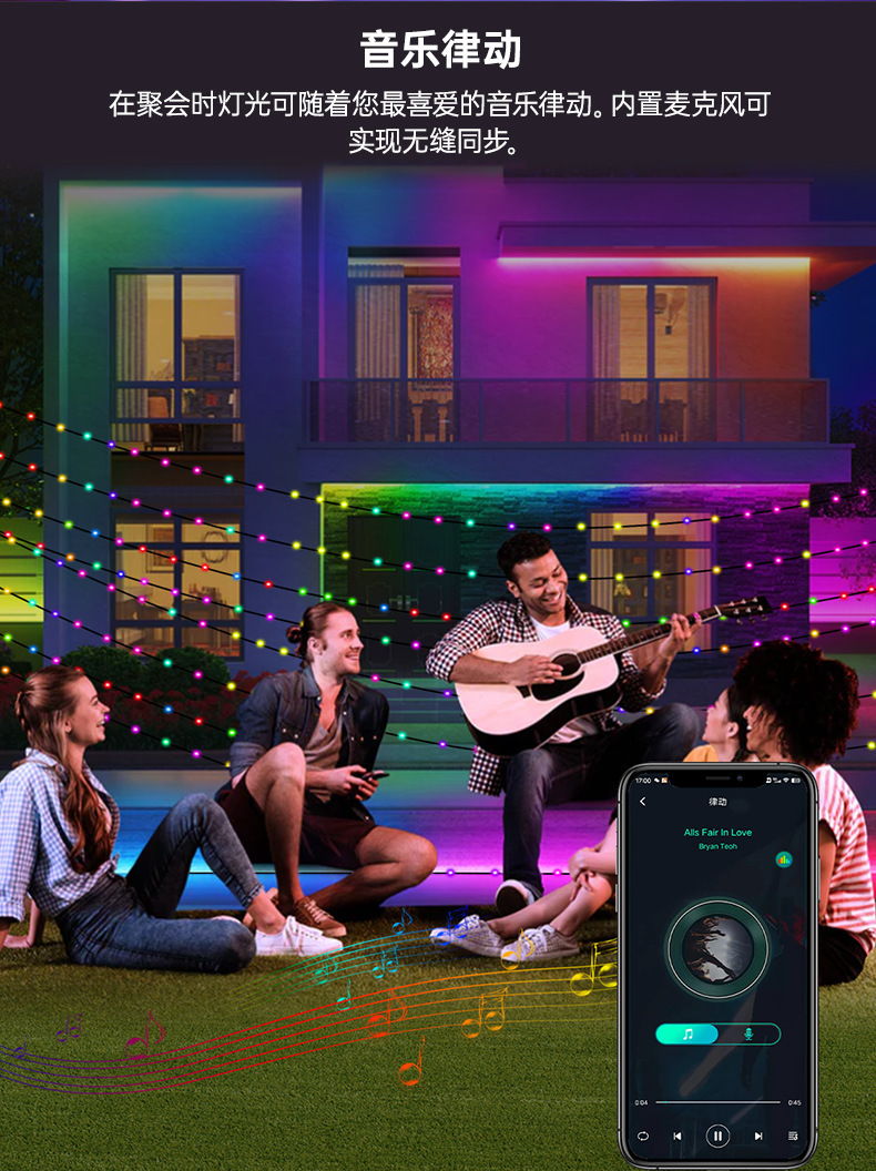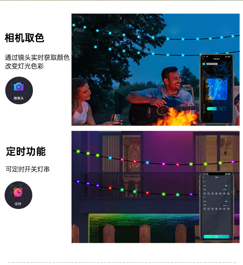 LED color mágico Cable de cuero Cadena de luz de Navidad patio decoración inteligente APP punto de control de cuero cable luz USB impermeable luz de control remoto