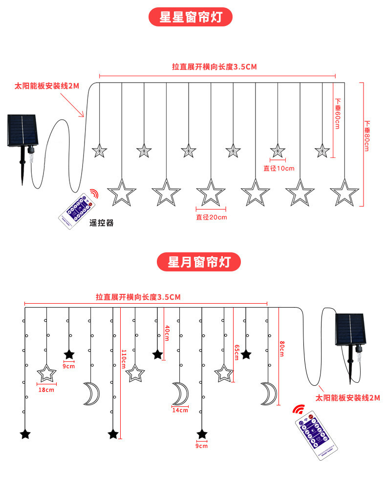 Solar LED estrella cortina luz Luna ins habitación decorativa luz al aire libre patio solar estrella Luna luz cadena