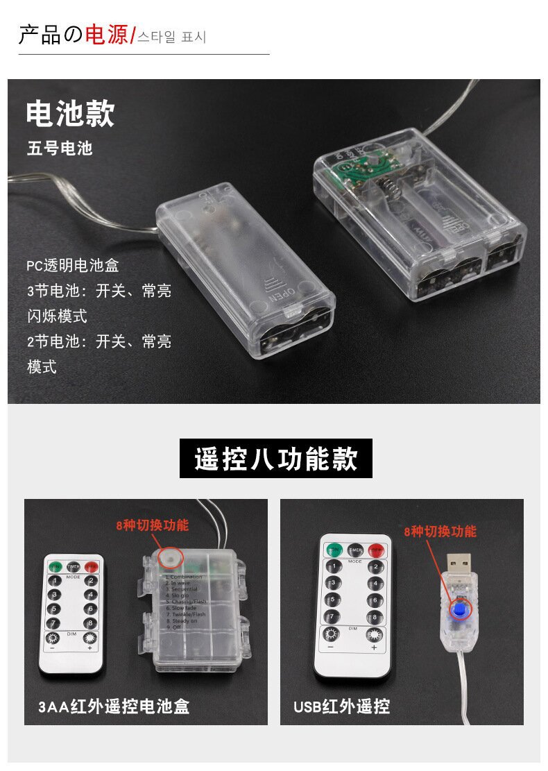 | Color de luz | Control remoto solar,Tipo de plug-in,Plug-In con control remoto,USB + batería de doble uso,USB + batería control remoto de doble uso |