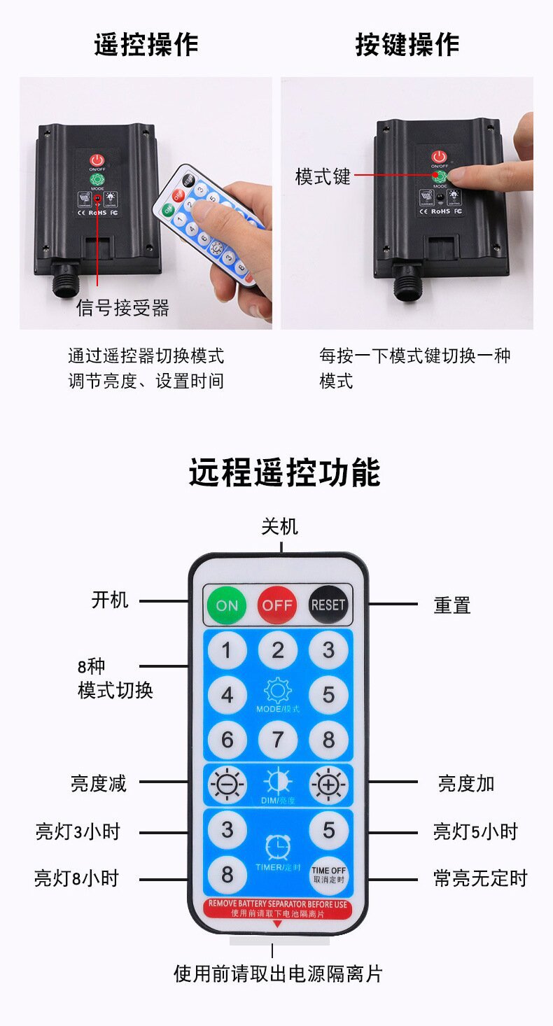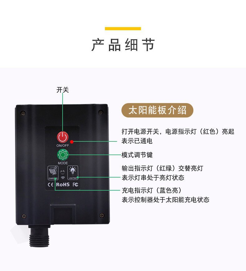 Solar con control remoto Luz de cortina blanca cálida