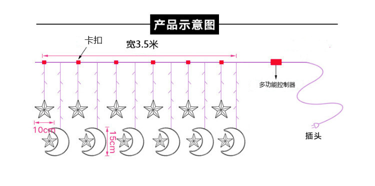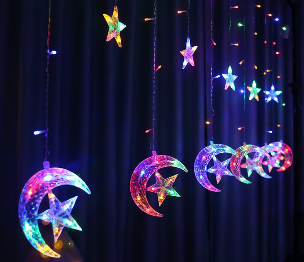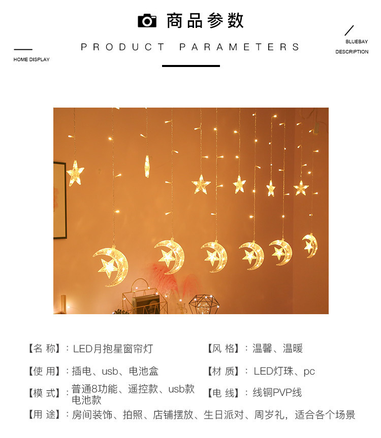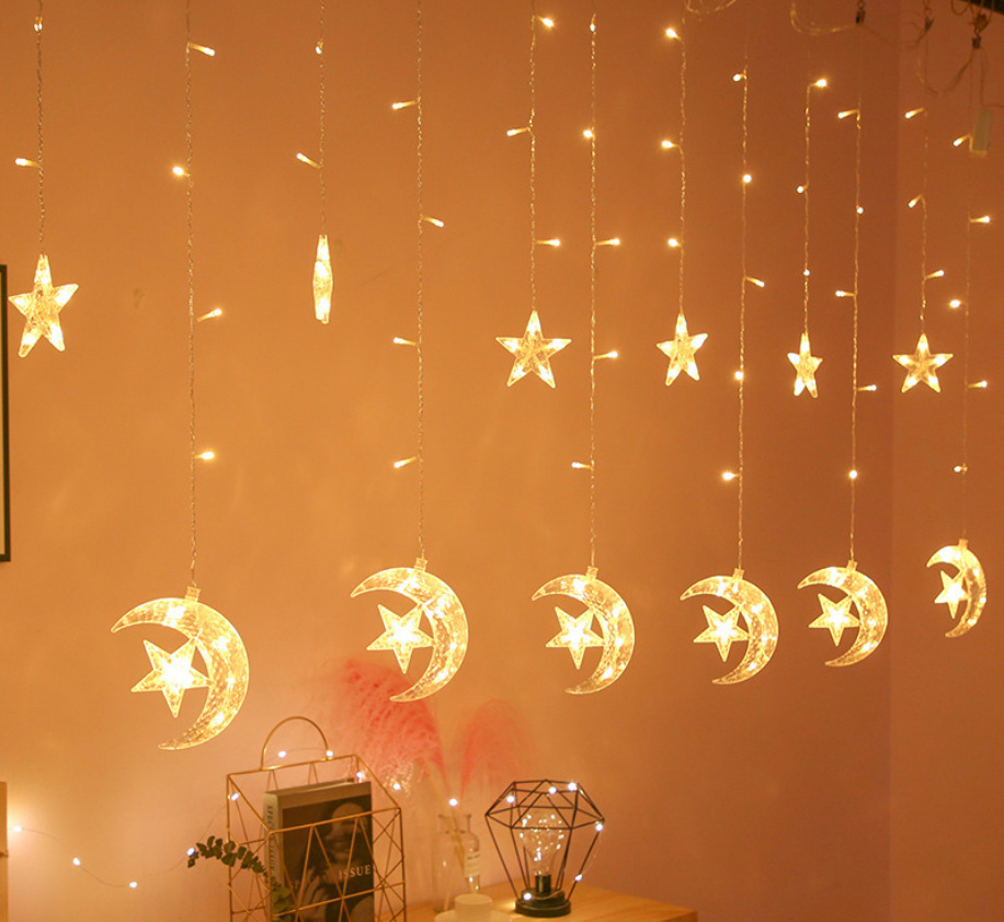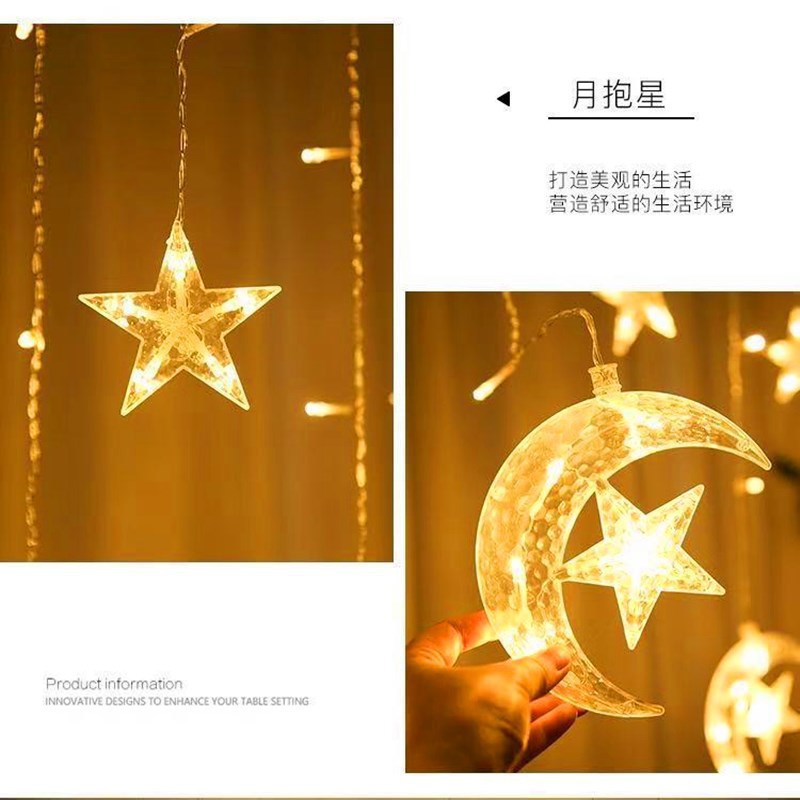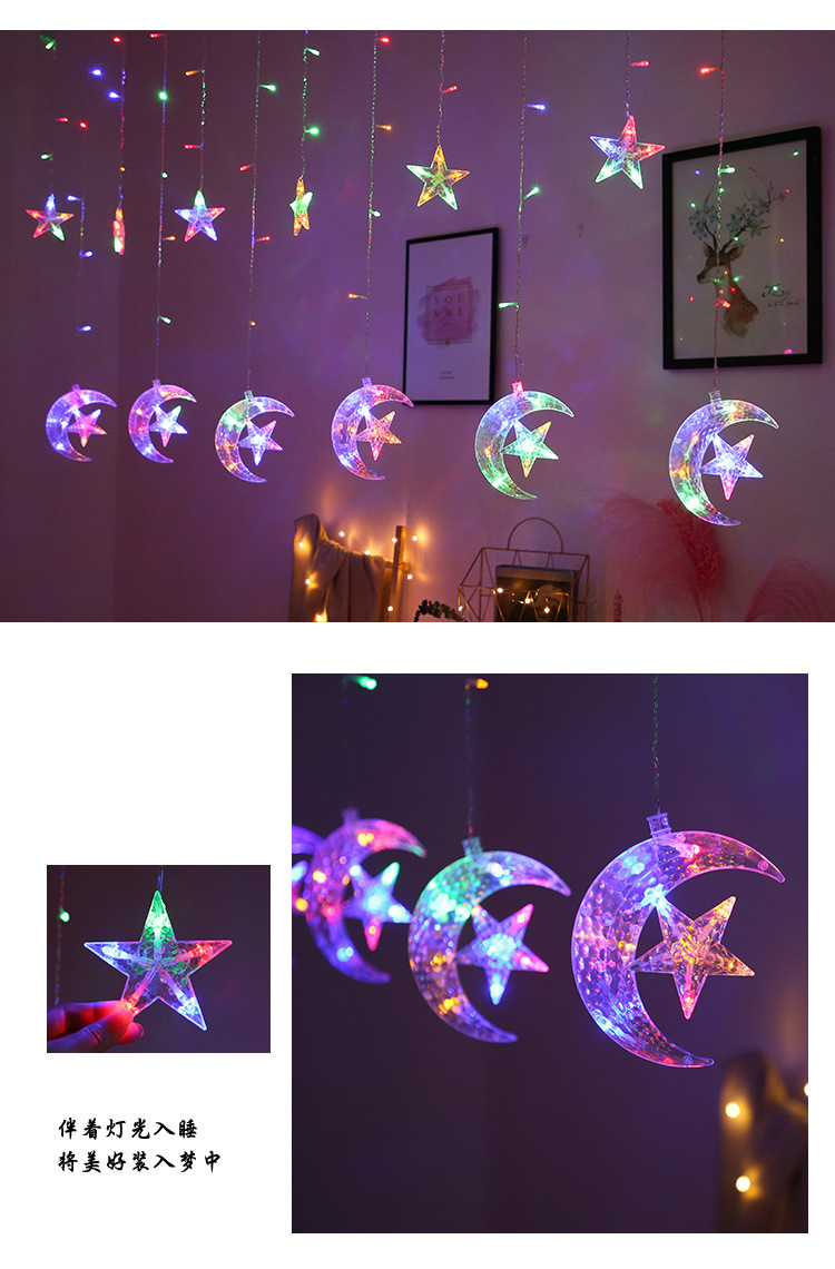 Luna LED celebración estrella cortina luz decorativa luz de la luna que acompaña estrella cadena de luz festival de navidad luna internet celebridad habitación decorativa de color luz