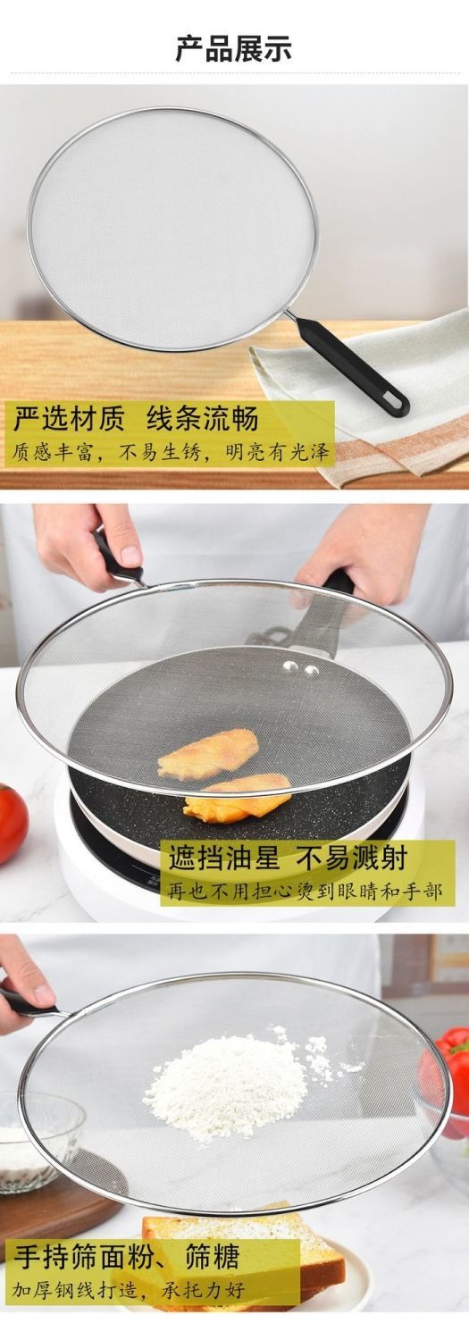 Cocina de acero inoxidable frita cubierta de malla a prueba de salpicaduras de aceite deflector cubierta de olla doméstica redonda de filete frito cubierta de malla a prueba de derrumbamiento de aceite