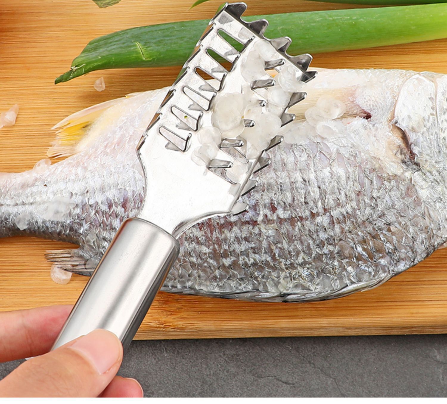 304 acero inoxidable pan de pescado + tijeras de cocina gris