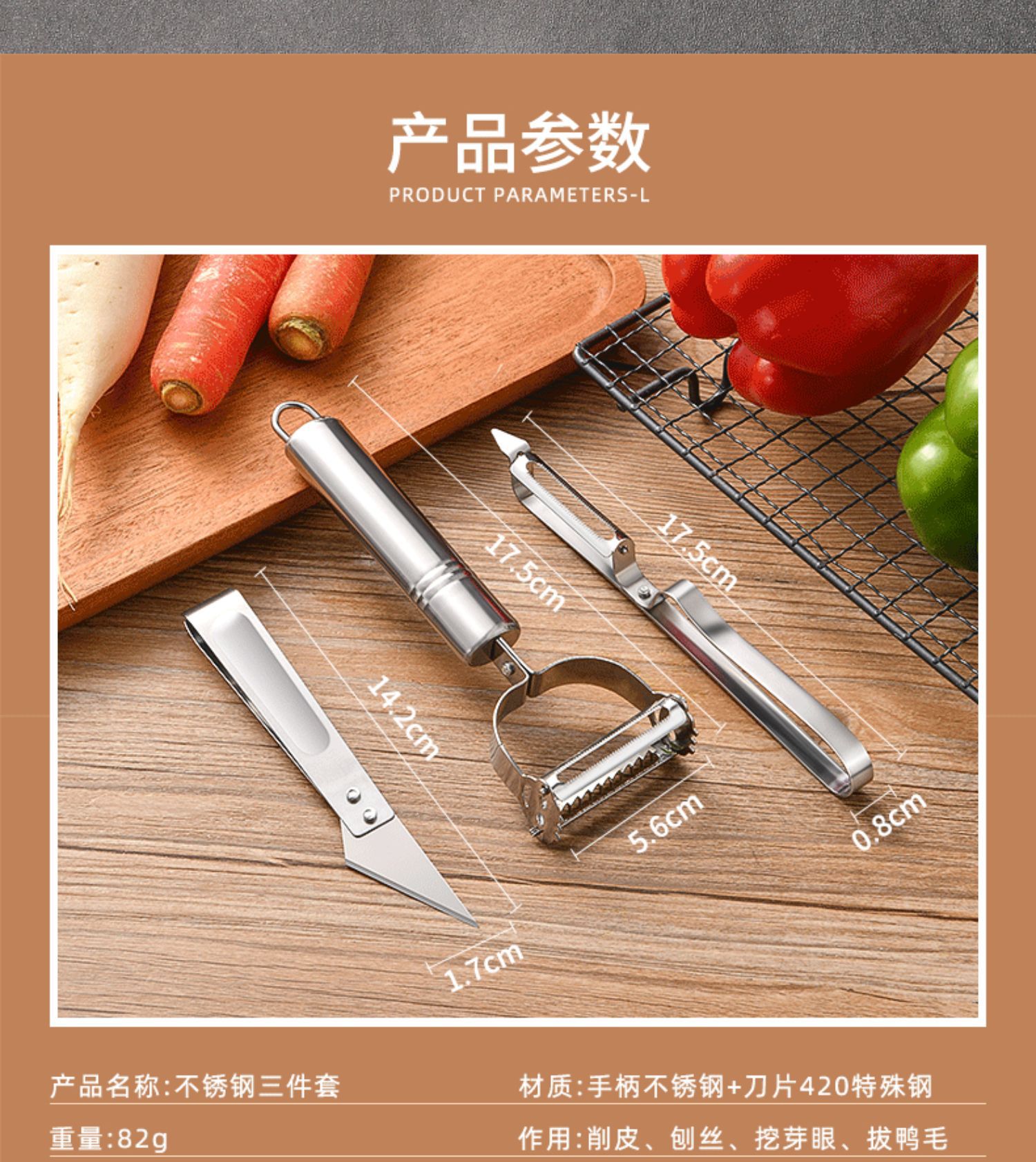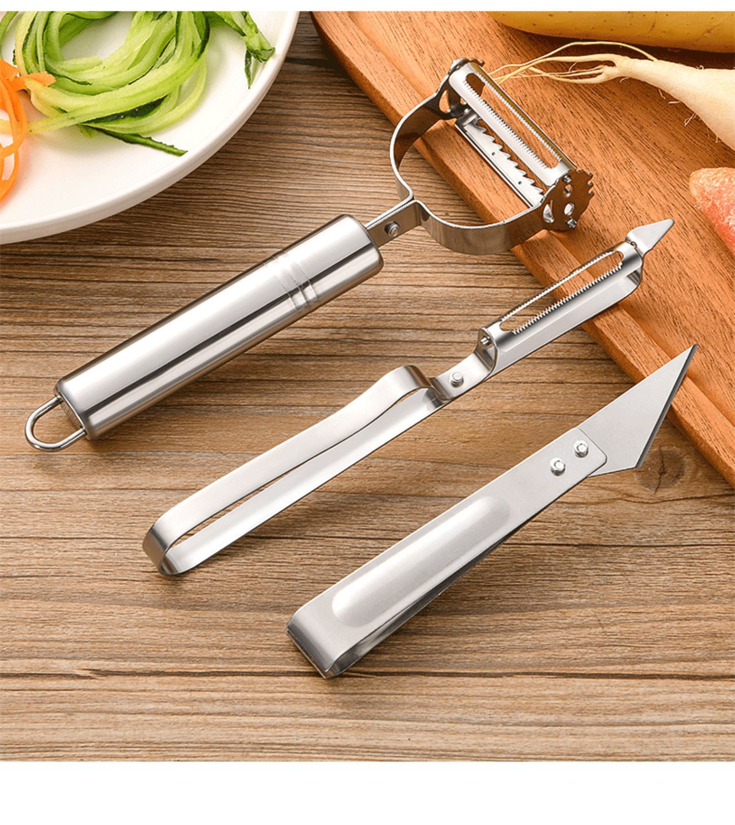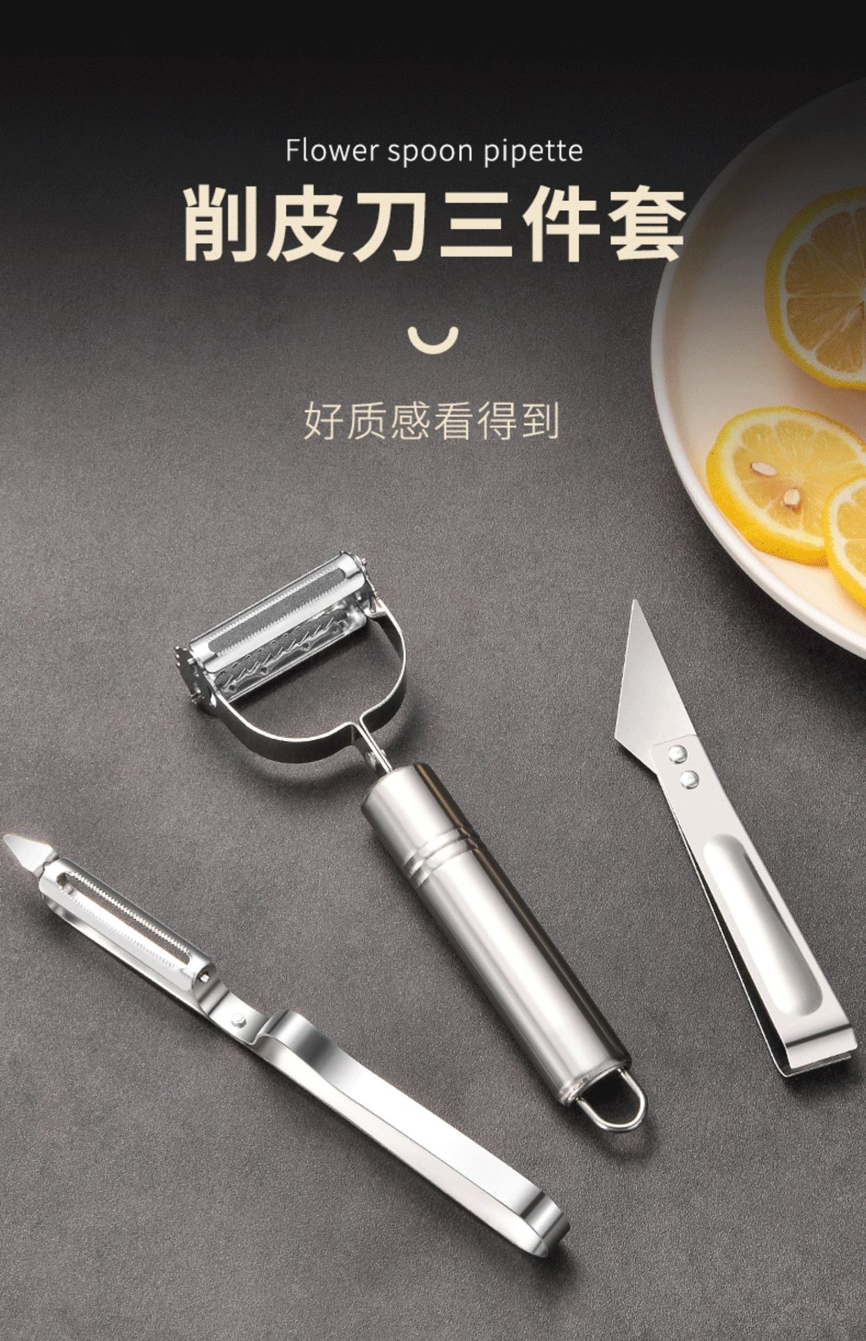 Cuchillo de frutas multifuncional de cocina doméstica raspadora de papas raspadora de frutas de tres piezas para dormitorios de estudiantes de melón y fruta