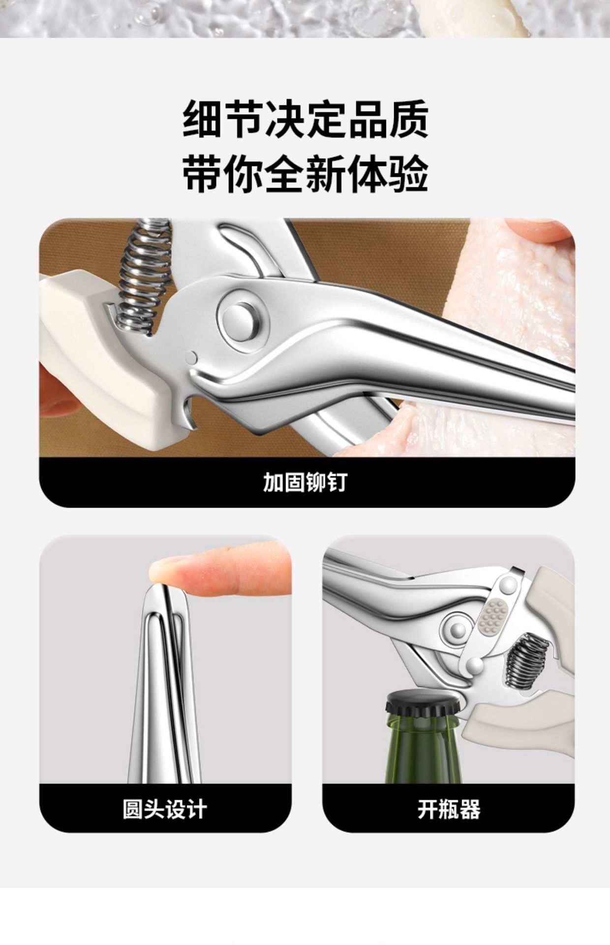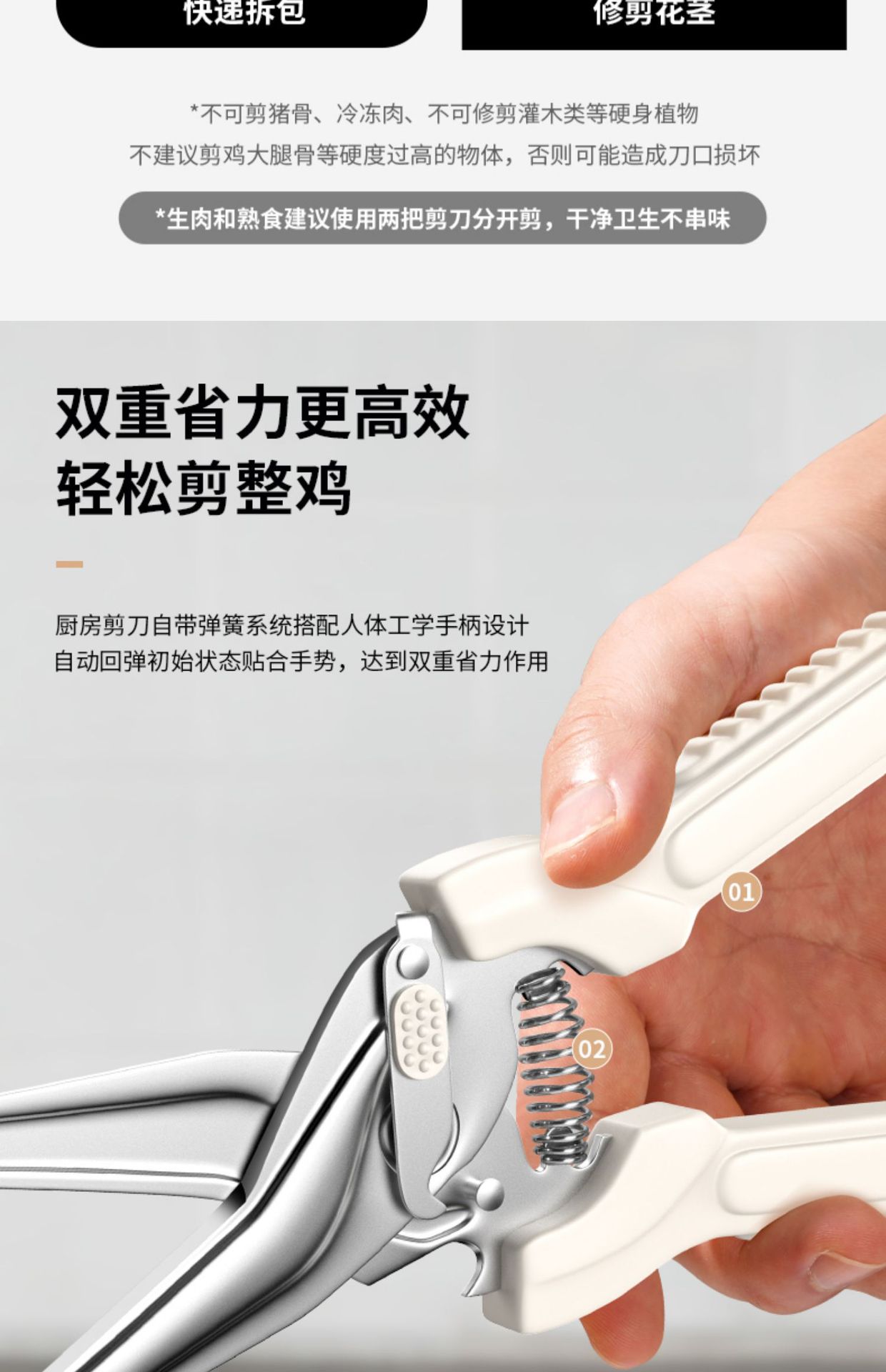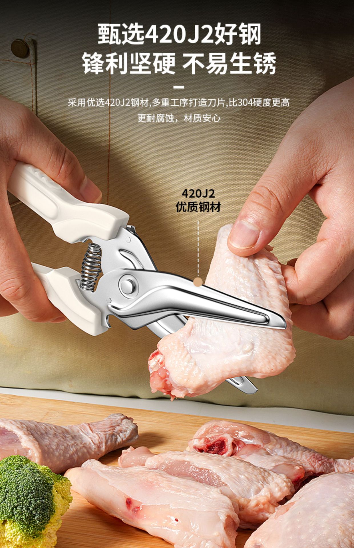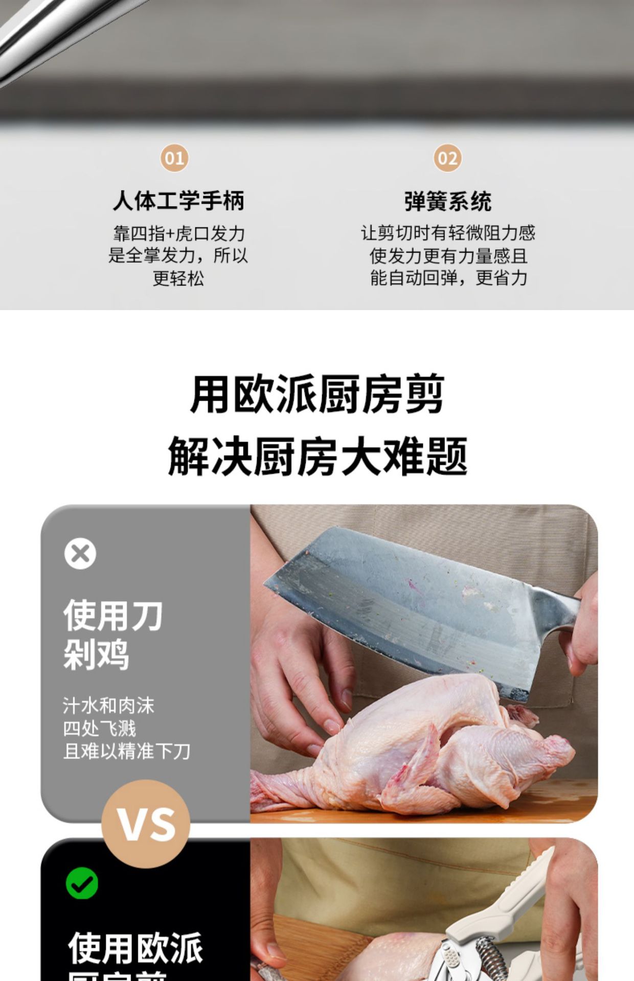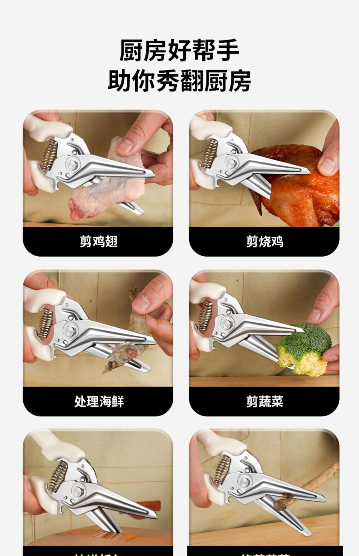 Cortadoras de carne asada, tijeras de pollo, tijeras de cocina de acero inoxidable, resorte multifuncional transfronterizo, Yangjiang Oupai