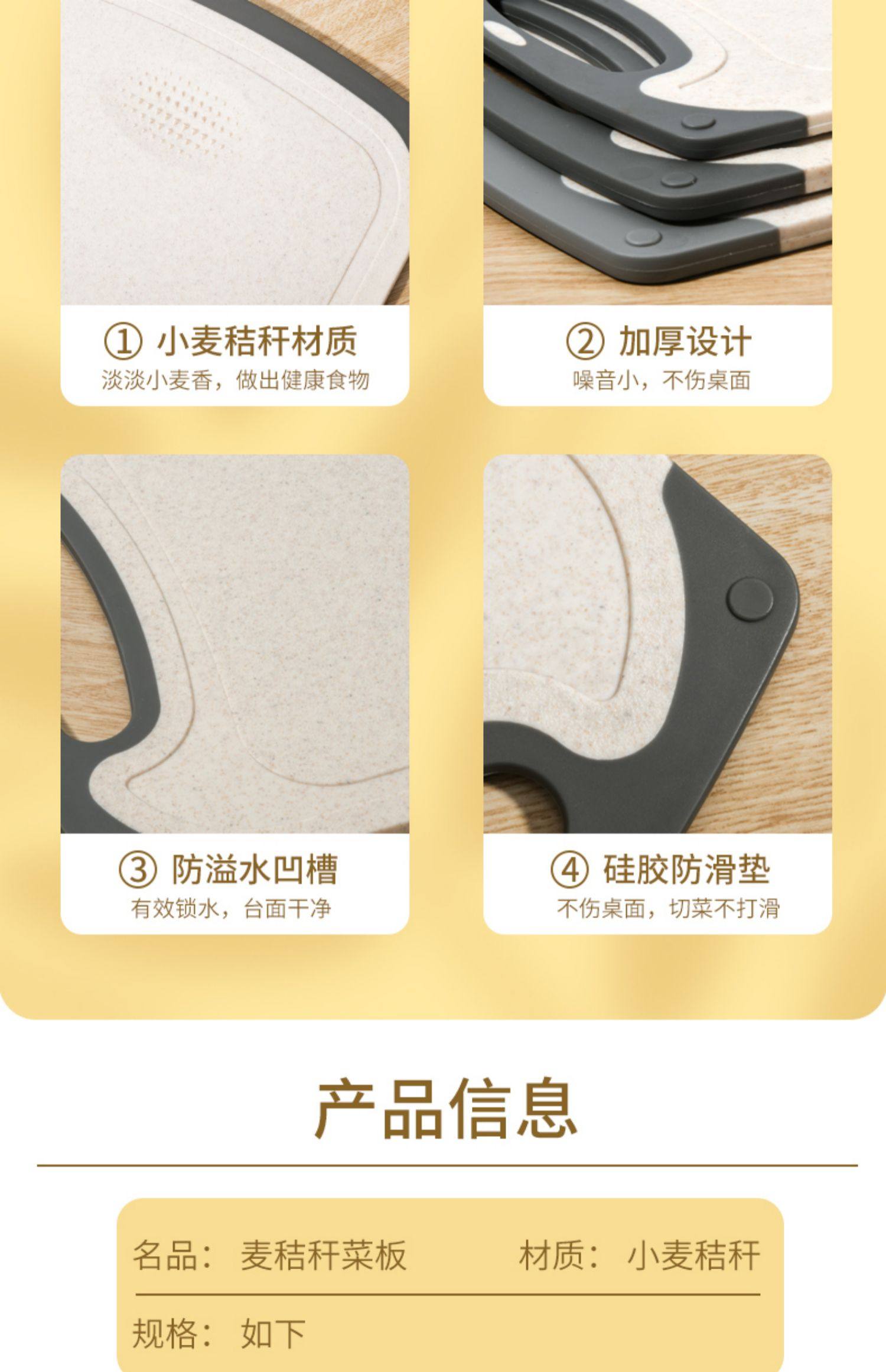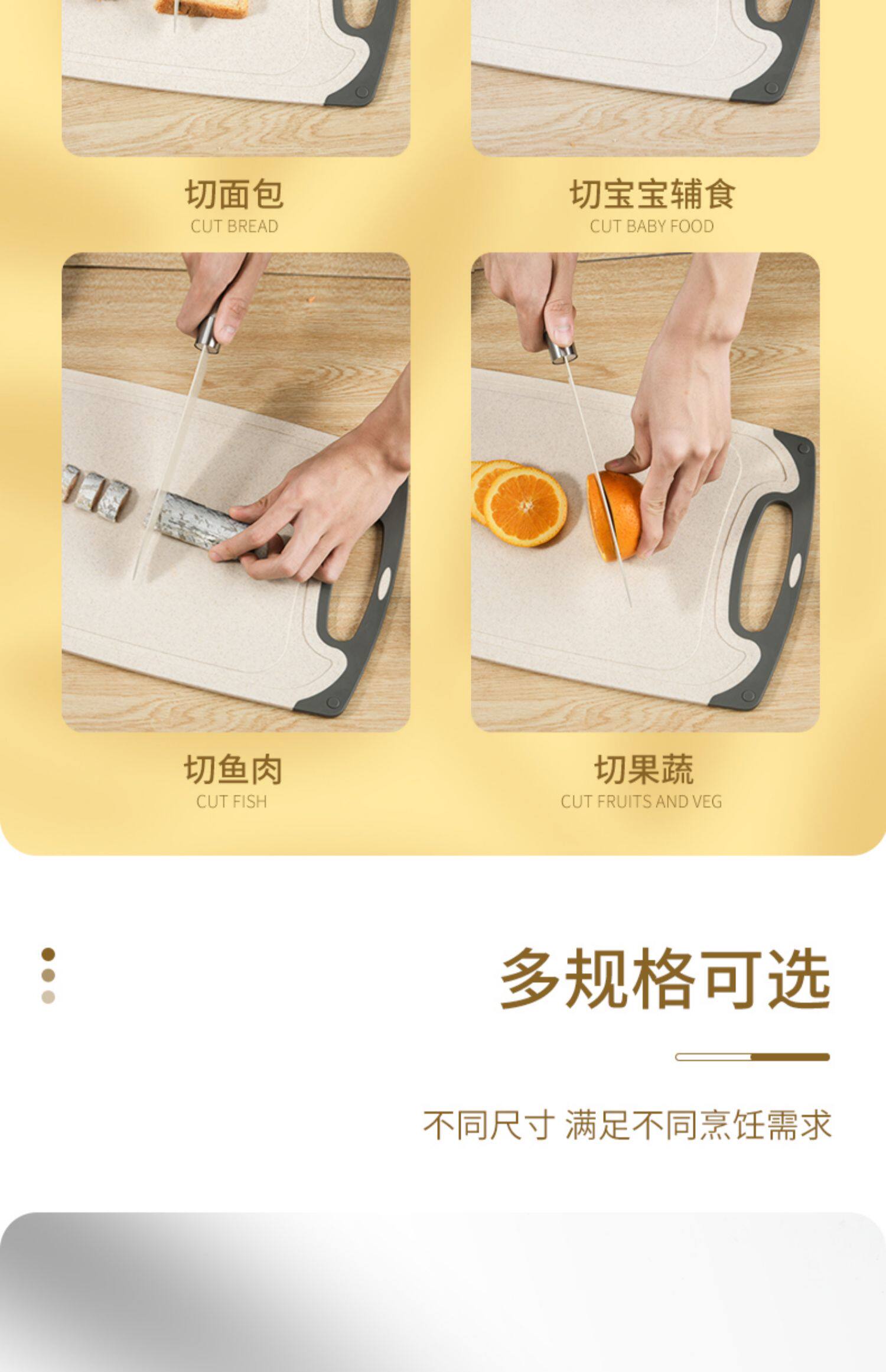 Tablero de mesa, tablero de corte de bebés, tablero de plástico de doble cara, alimentos suplementarios para bebés, tablero de corte de frutas caseras, fideos de paja, trigo