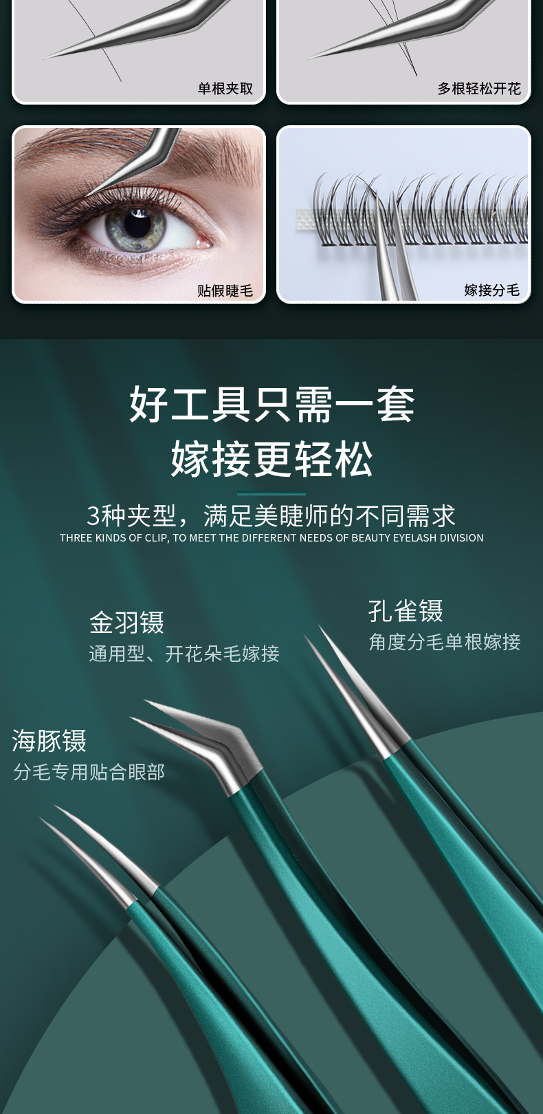 Dolphin clip set abierto pinzas de injerto de pestañas pinzas de injerto de pestañas herramientas de injerto de plumas de oro alto