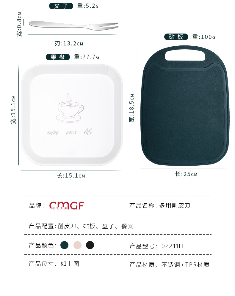 Planador de melón + cuchillo de frutas + tablero de corte de frutas + bandeja de frutas + tenedor de acero inoxidable _ 4 [cuchillo de regalo] para comer