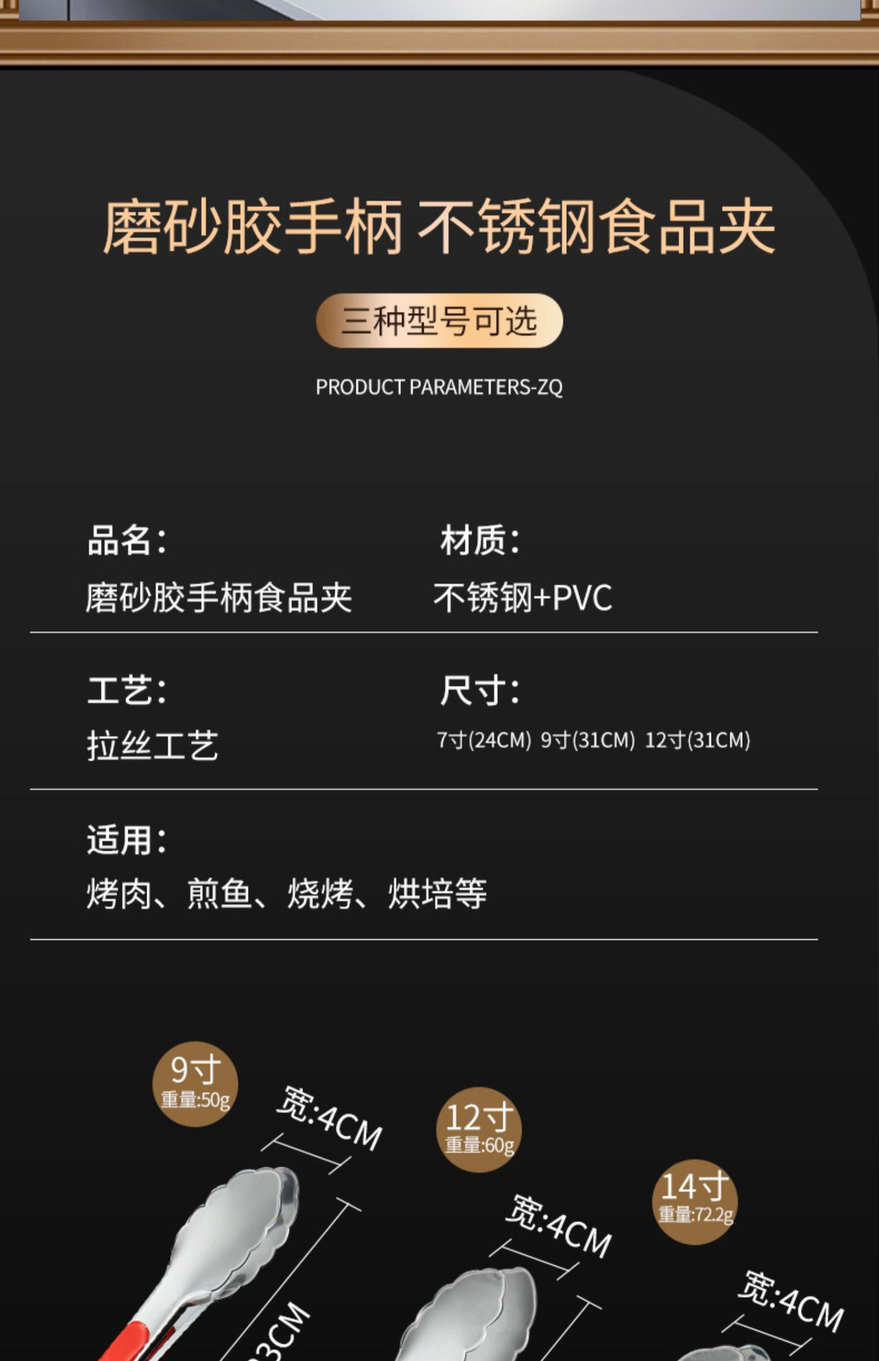![Clip de alimentos de 9 pulgadas + tijeras de asado de mango negro + cepillo de silicona color aleatorio [conjunto de 3 piezas de asado]](https://cbu01.alicdn.com/img/ibank/O1CN01D06OYc21jDUTctVbF_!!2218337257020-0-cib.jpg)