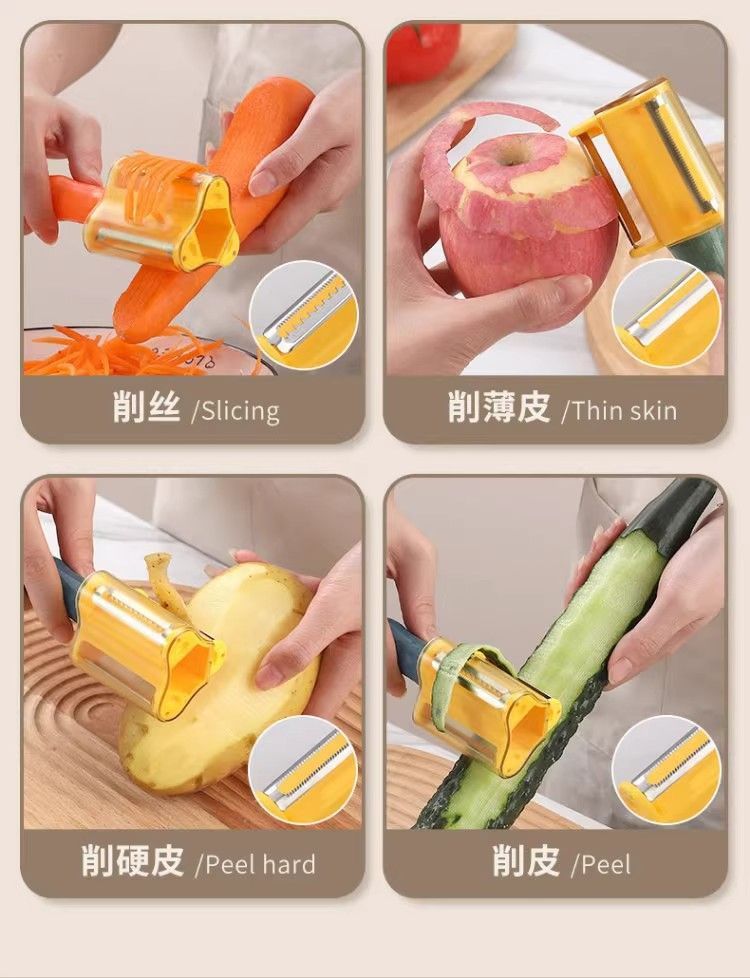 Cuchillo de peeling multifuncional 3 en 1 cuchillo de peeling rotativo casero cuchillo de raspado cuchillo de raspado cuchillo de frutas de patata de cocina