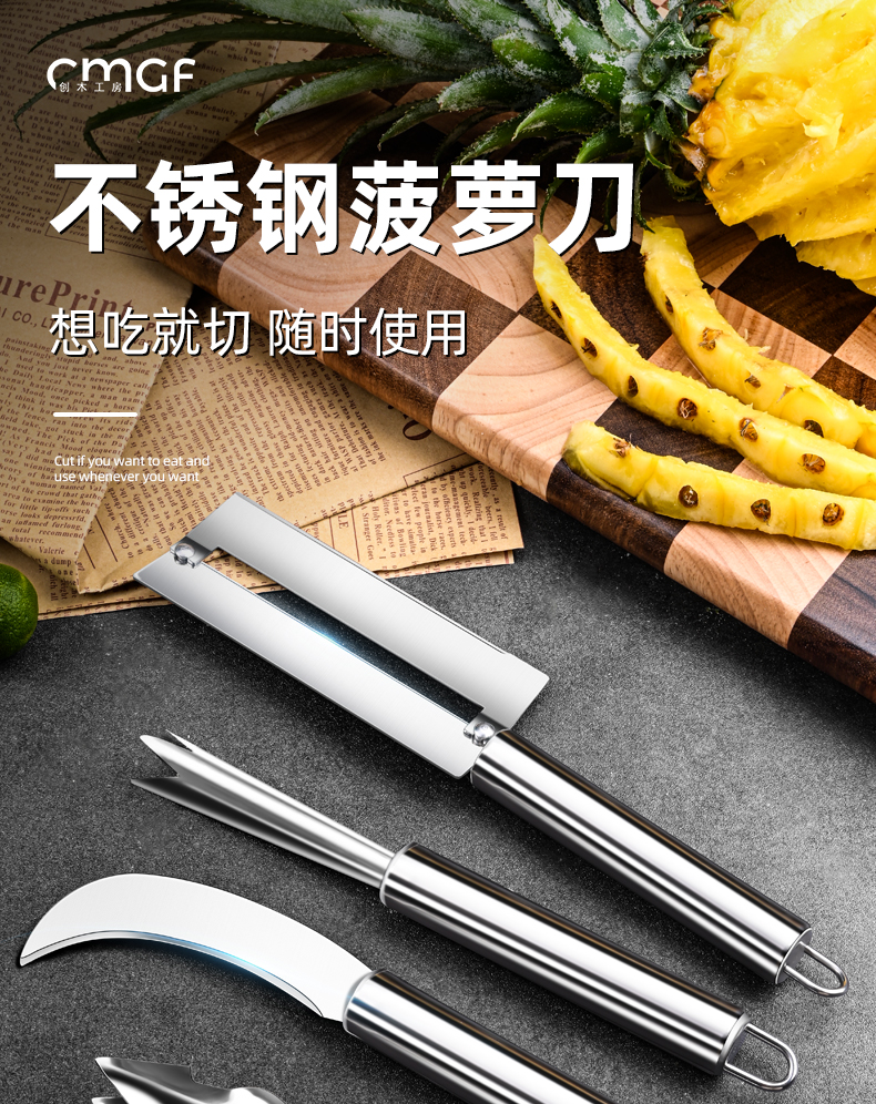 Ojos cortar un cuchillo de piña cuchillo de caña de azúcar de piña al por mayor pelador de acero inoxidable