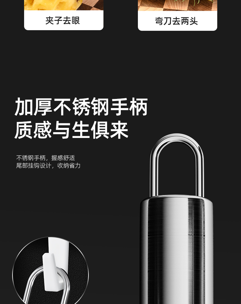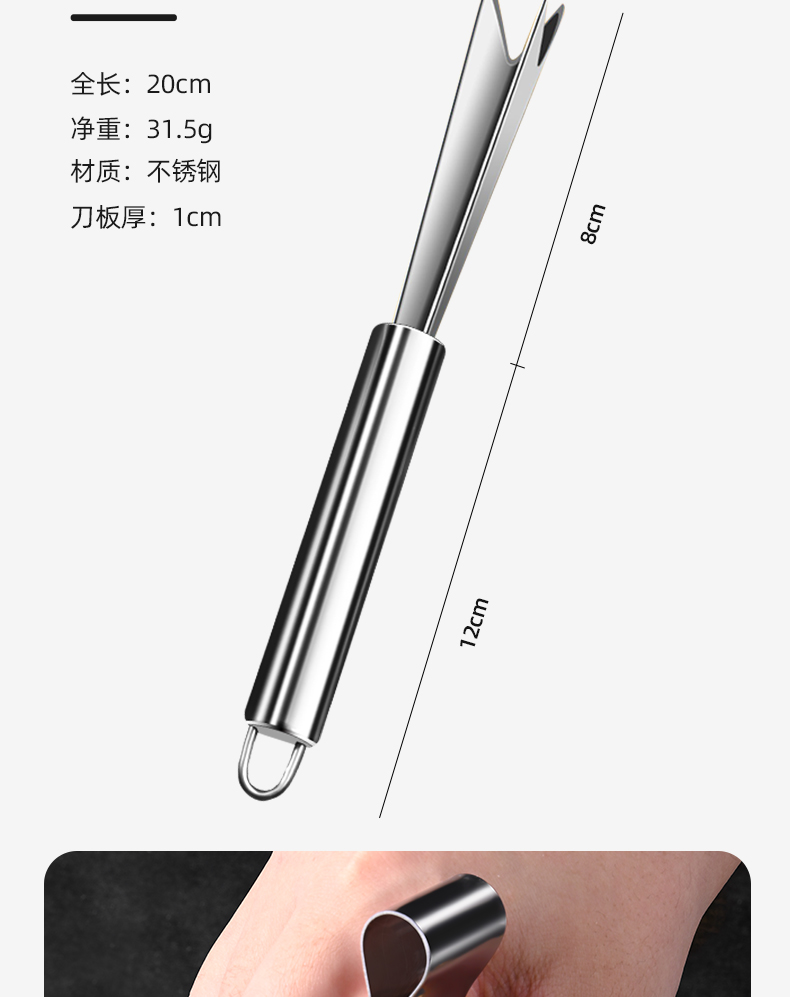 Cuchillo de pelado + tenedor de piña + horquilla de piña