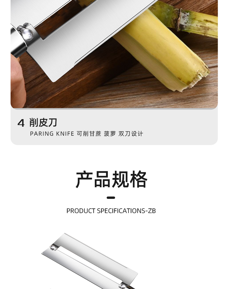 Clipe de ojos + cuchillo multipropósito de acero inoxidable + cuchillo de caña de azúcar