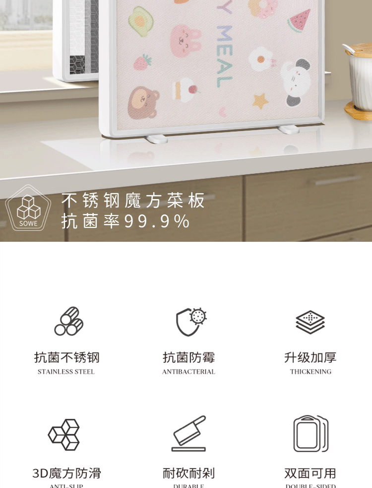 Tabla de acero inoxidable tabla de corte de tamaño medio para cortar verduras domésticas suplemento panal de miel blanco textura de carne tabla de mesa de doble cara disponible sin