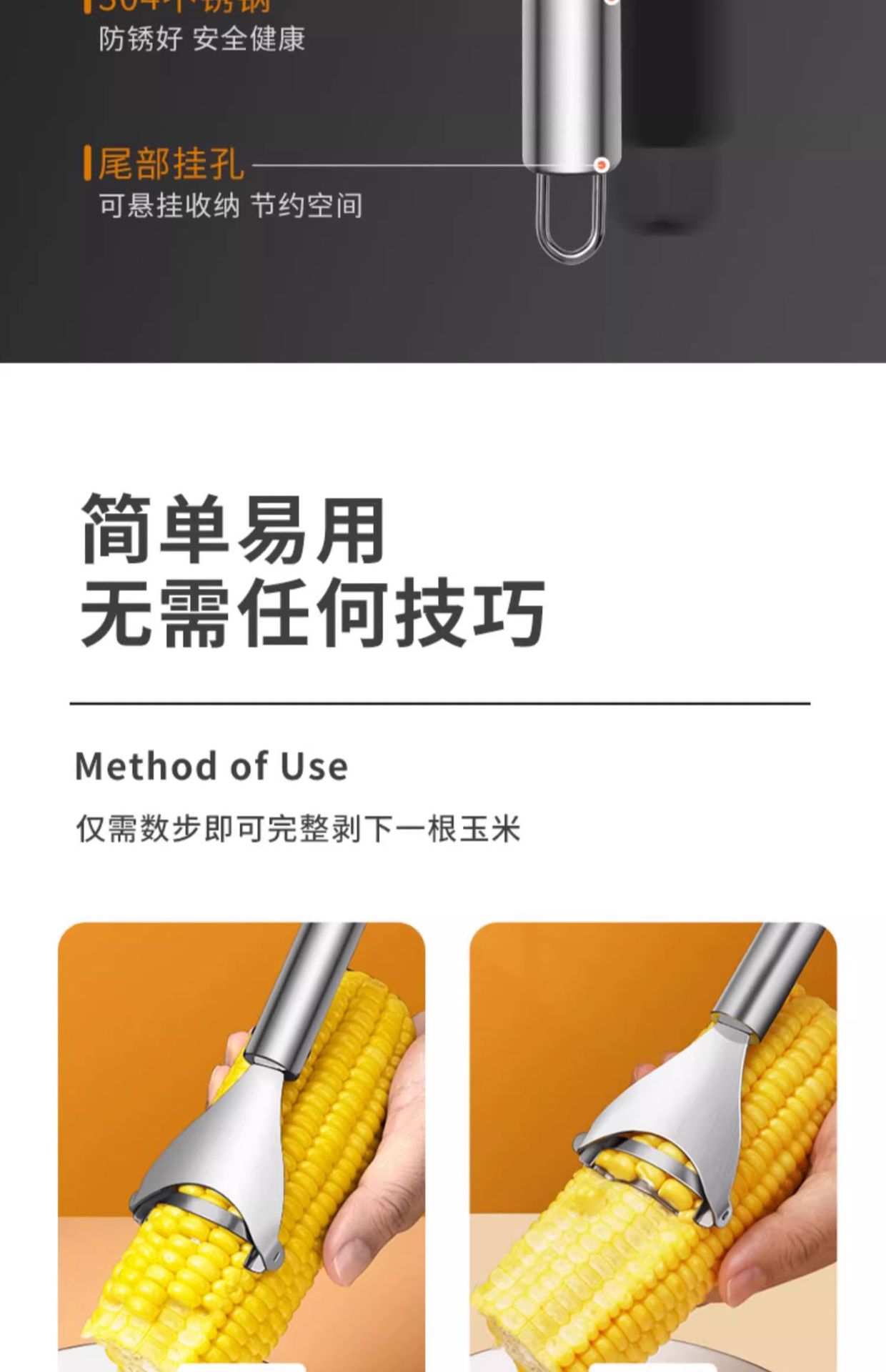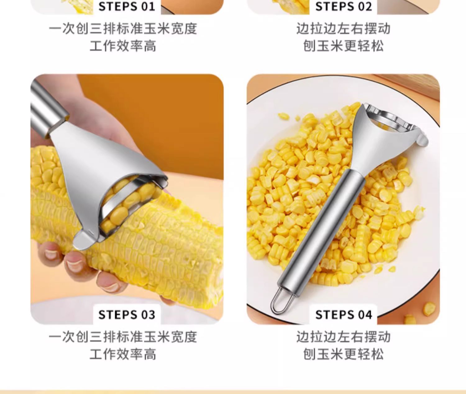 Peeling de maíz de acero inoxidable casero pulsador de maíz raspador de maíz raspador de maíz 1102 sin