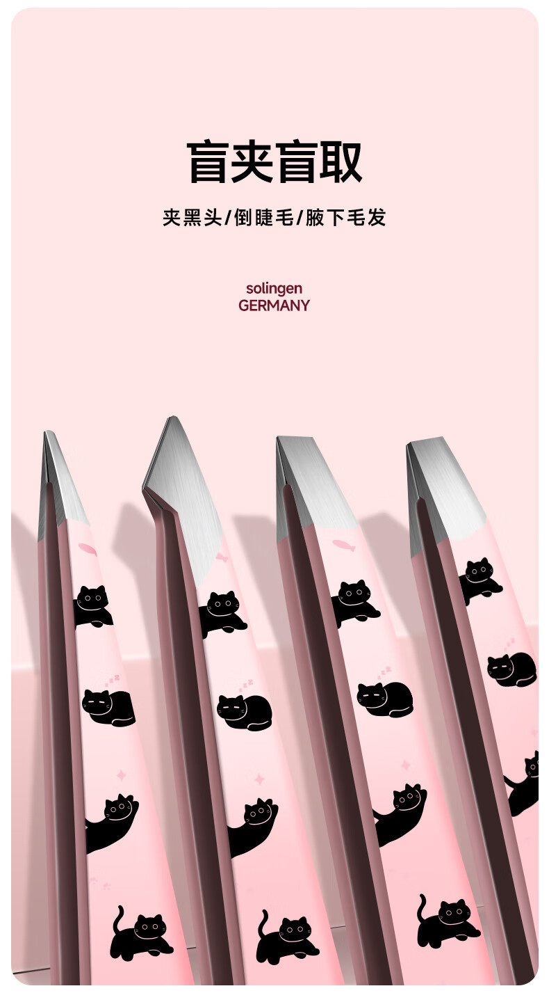 Clipe de ceja de gato negro rosa (gancho + boca inclinada + boca plana + boca afilada)