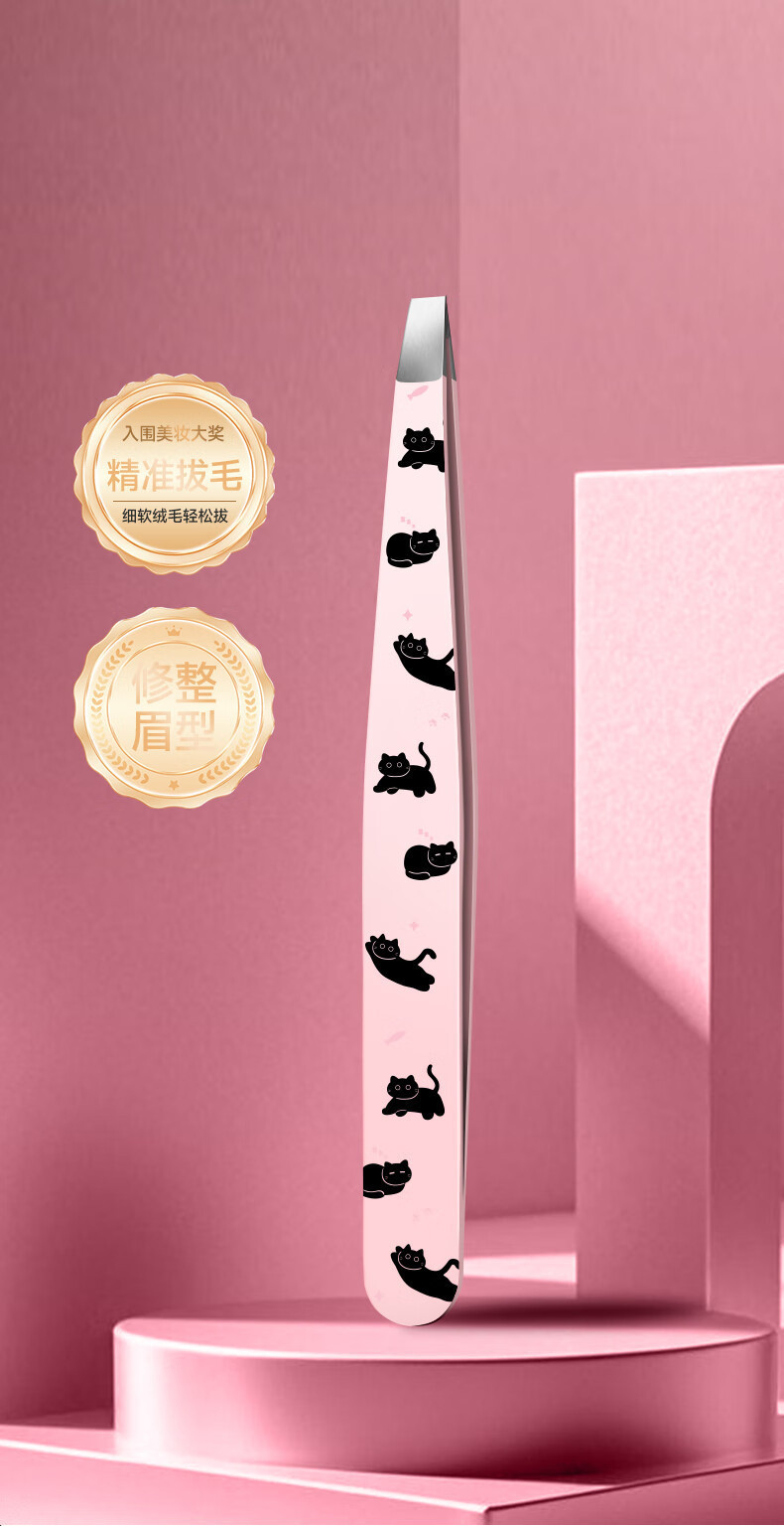 Clipe de ceja de gato negro rosa (inclinado + boca plana + boca afilada) + caja