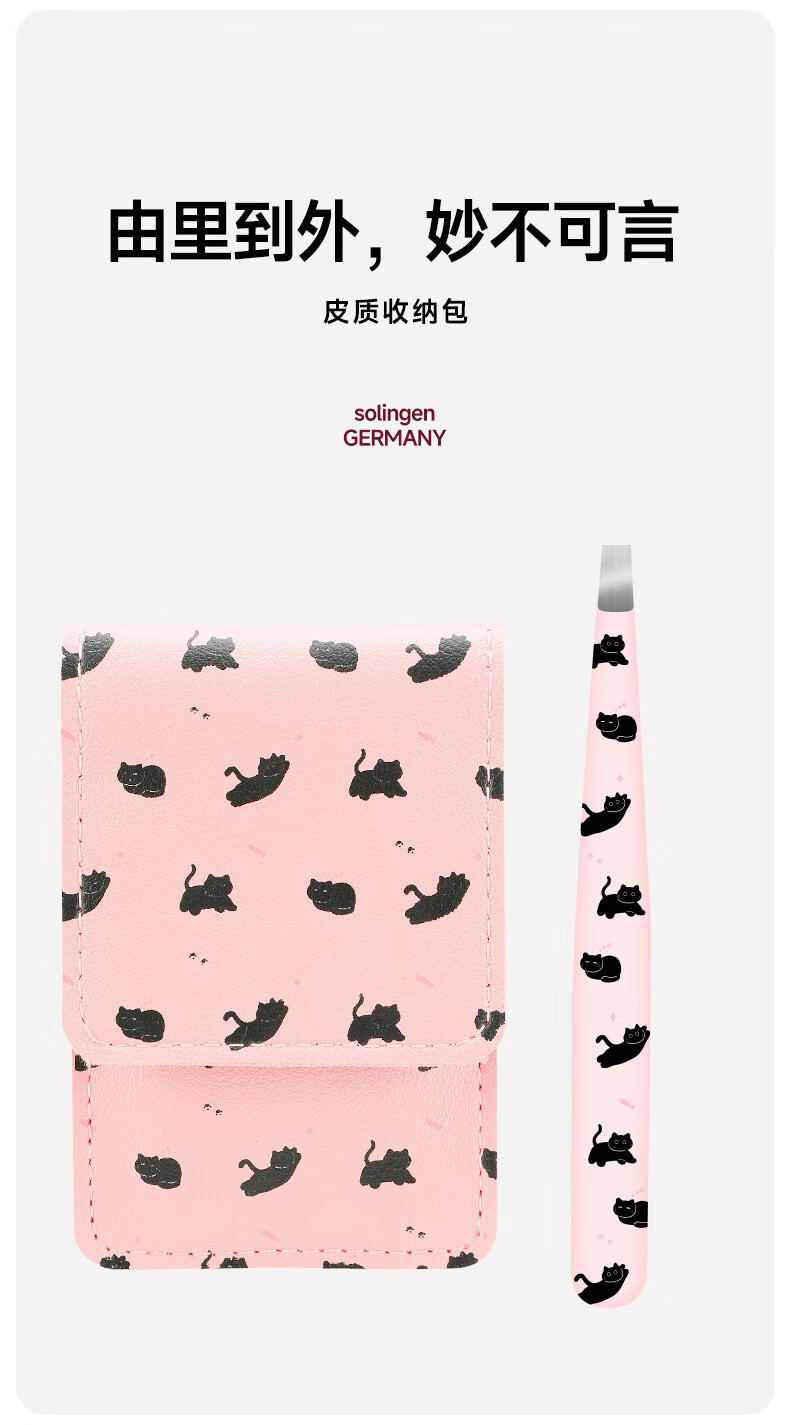 Clipe de ceja de gato negro rosa (inclinación + boca plana + boca afilada) + funda de cuero