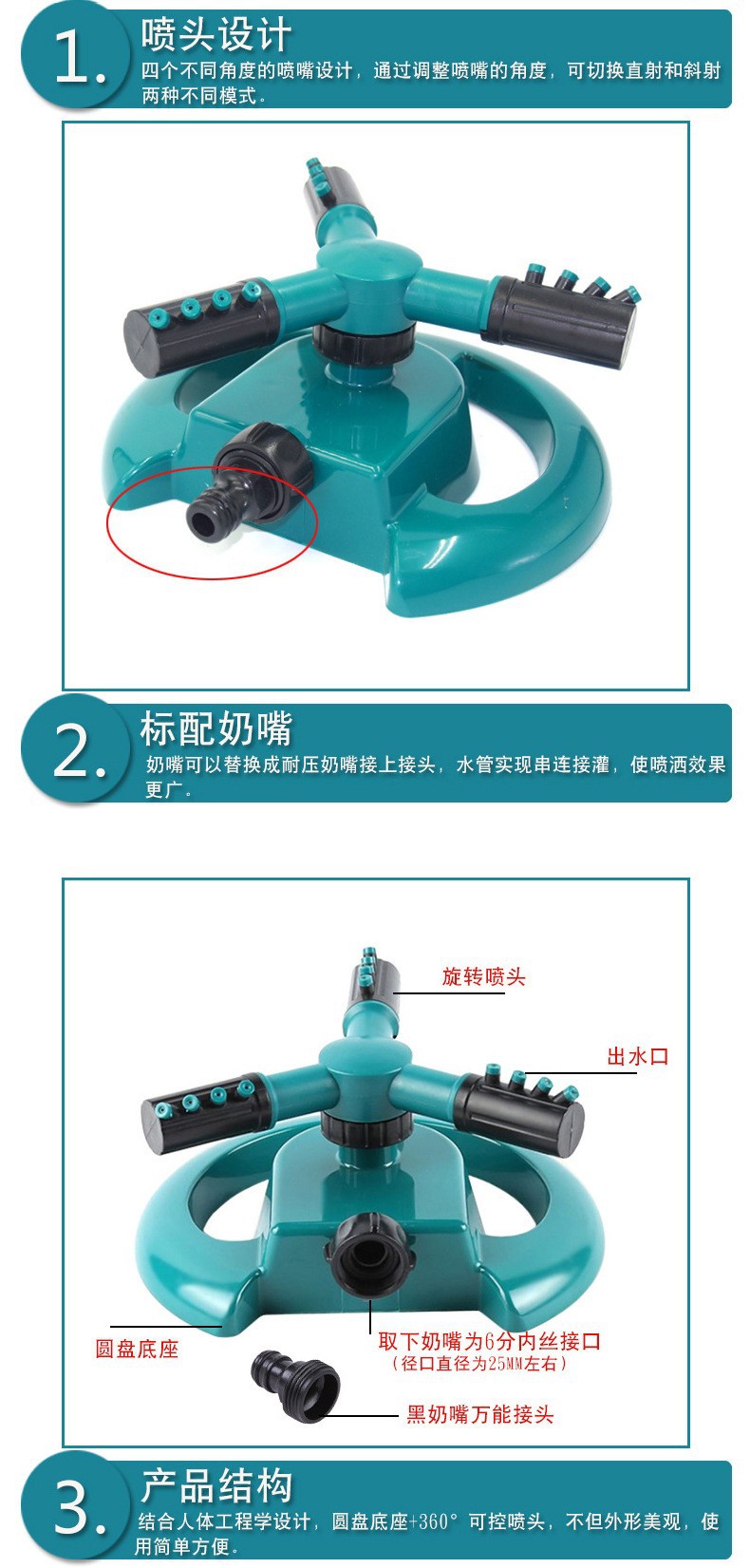 rociador de media luna 360 grados rotación rociador de tres horcos grande para jardín de riego agrícola rociador césped enfriamiento