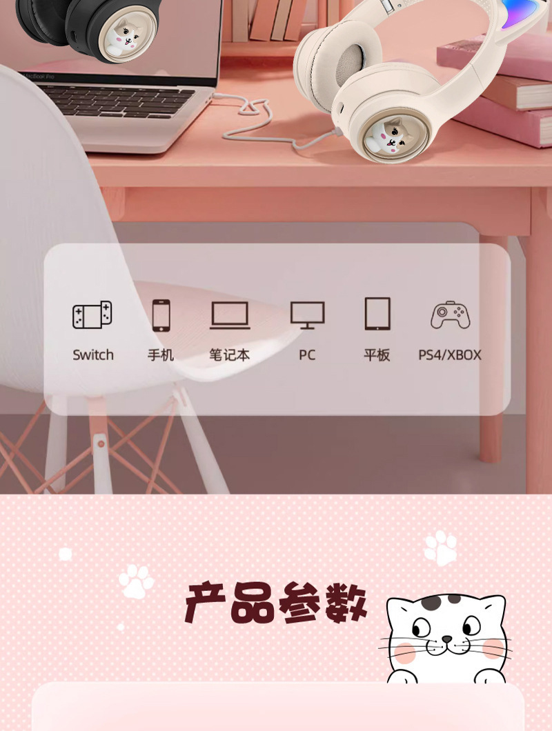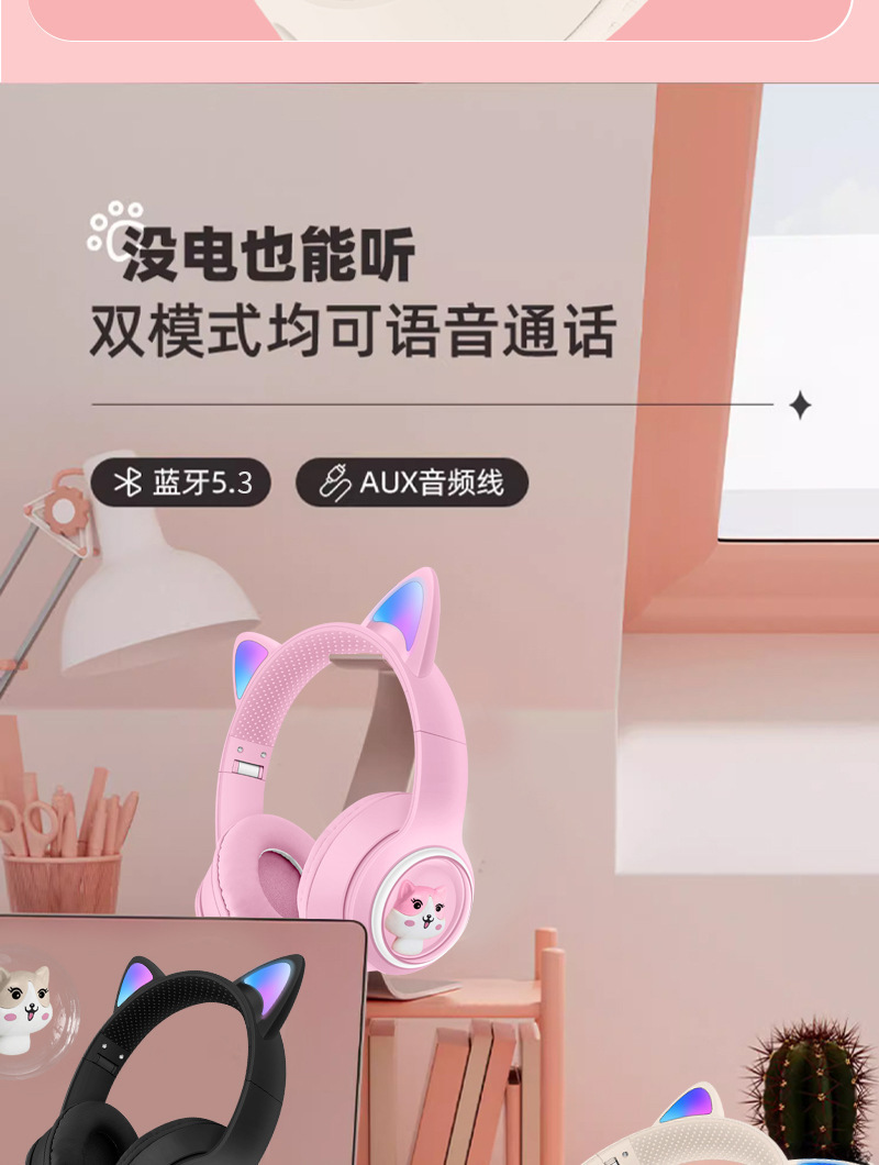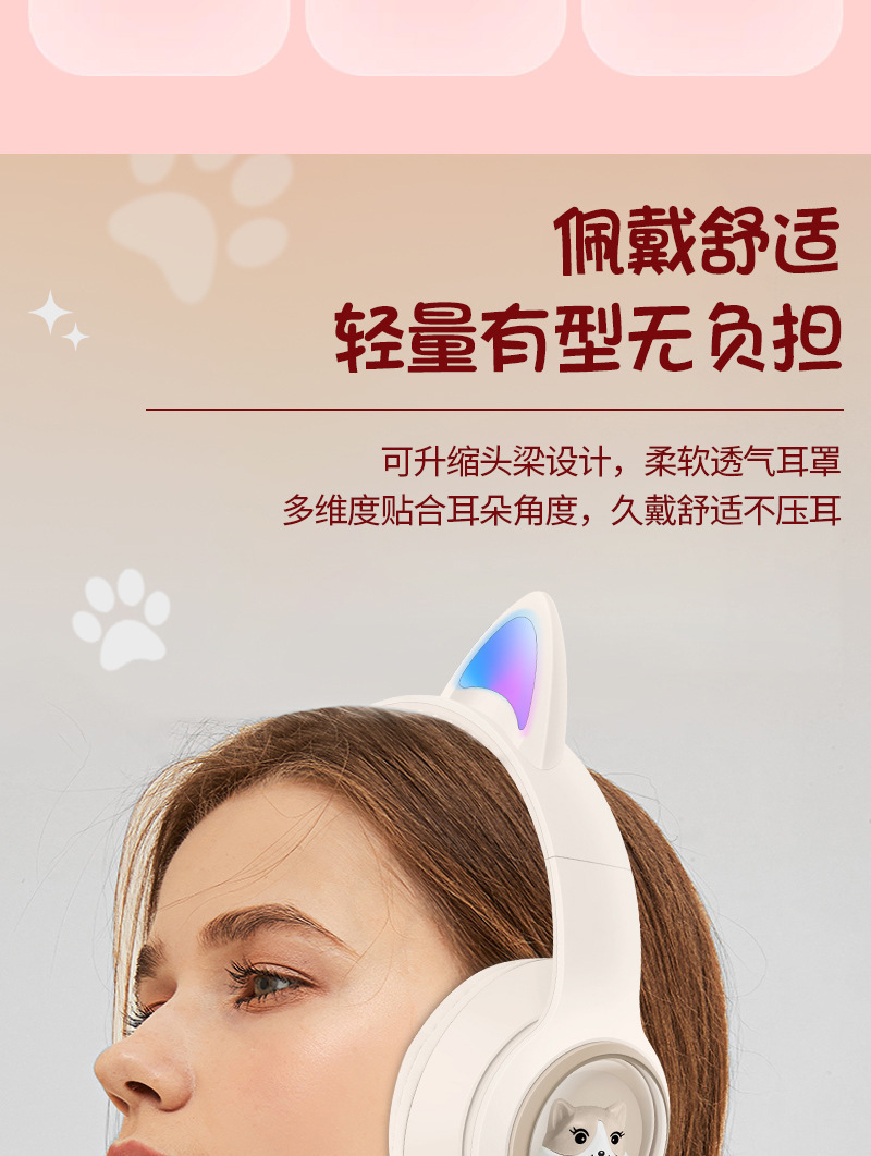 Cápsula espacial AKZ-01 Orejas de gato luminosas Auriculares Bluetooth para niñas Linda tarjeta de fuego de explosión transfronteriza de deportes electrónicos
