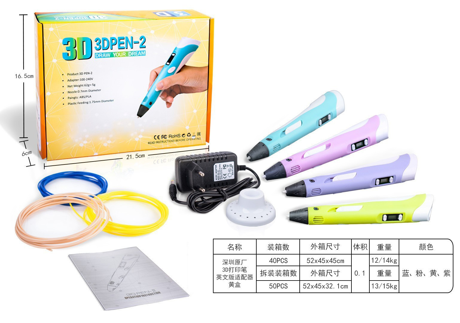 Suministro directo de fábrica Bolígrafo de impresión 3D de segunda generación Pintura tridimensional Pincel de graffiti Explosión de comercio exterior transfronterizo Regalo para niños Estudiantes
