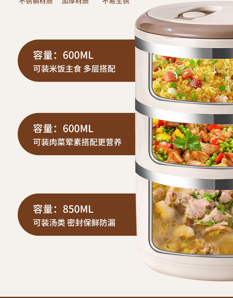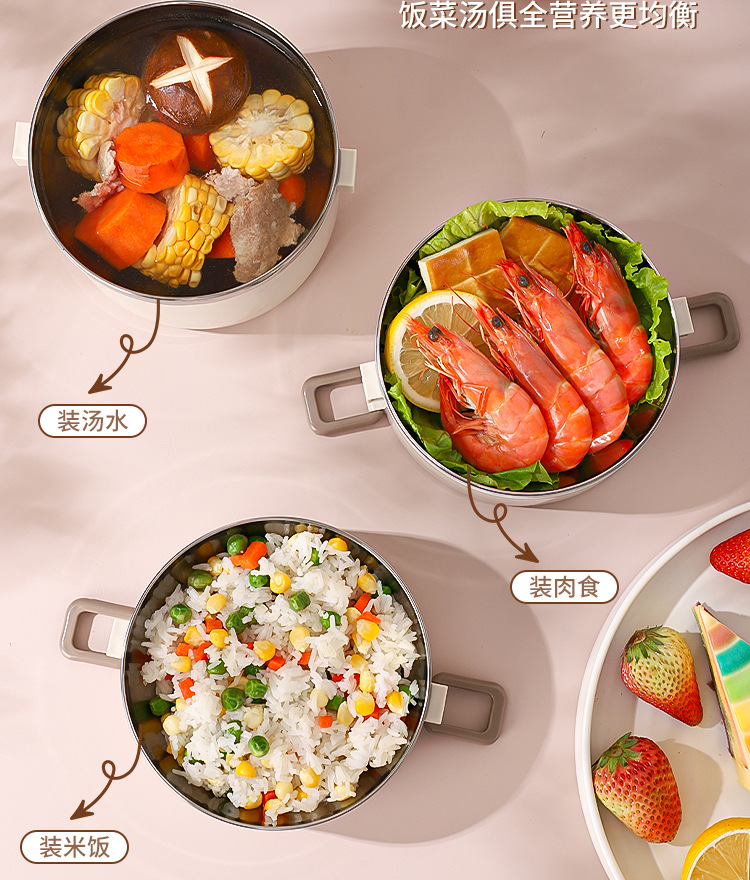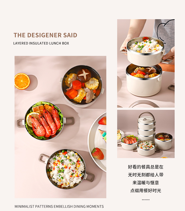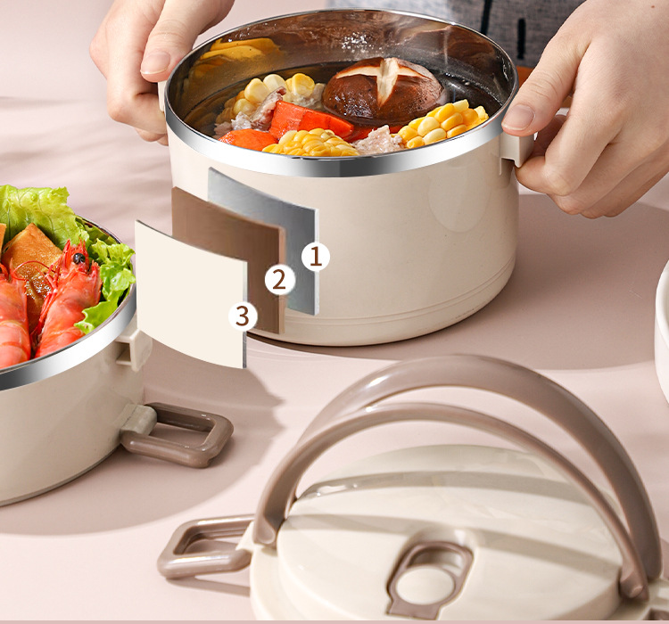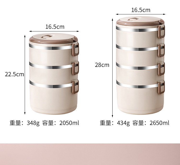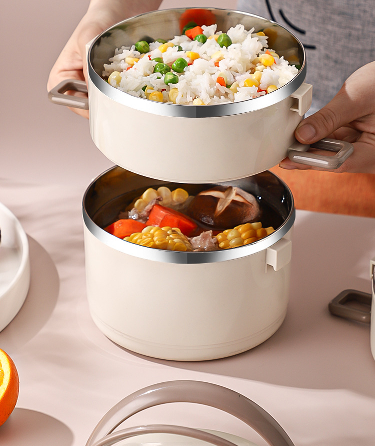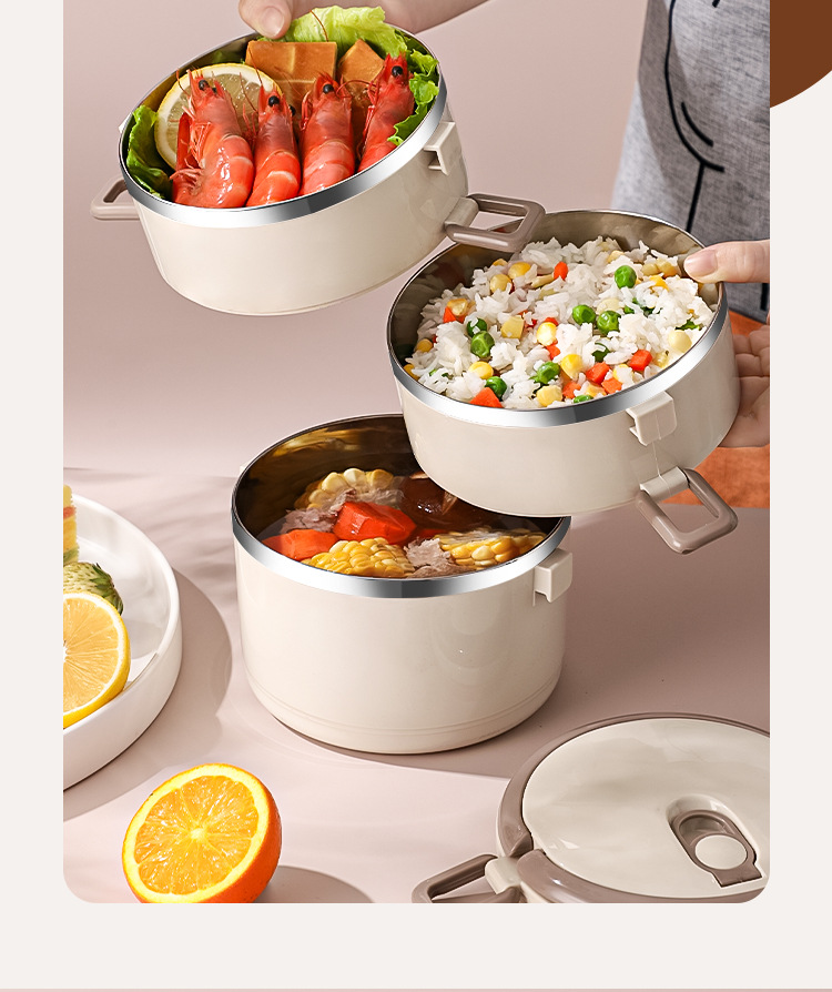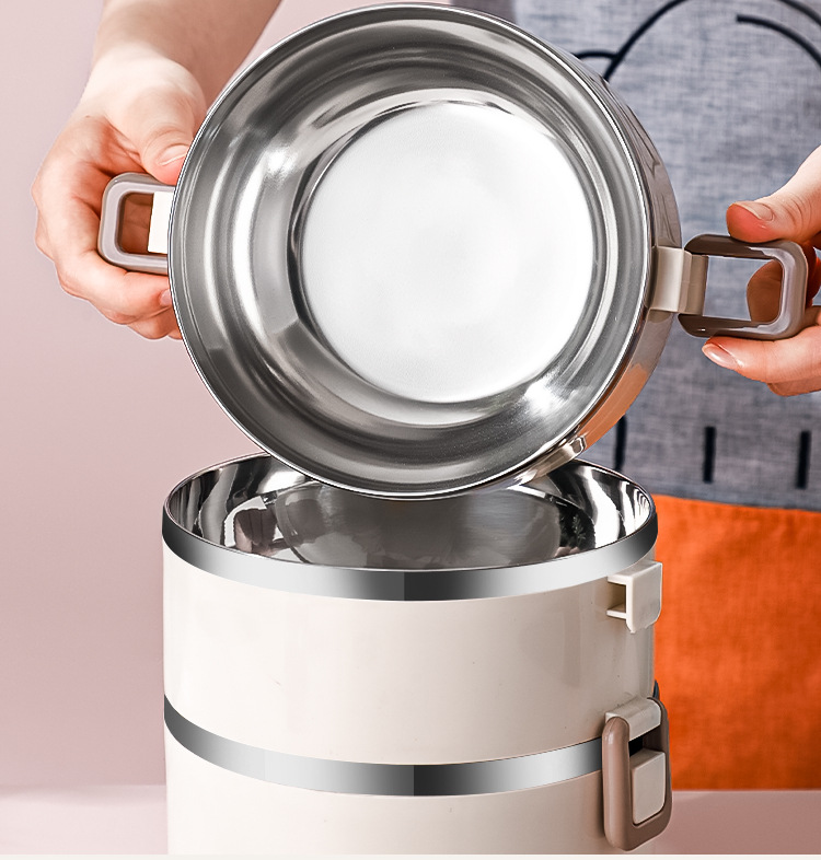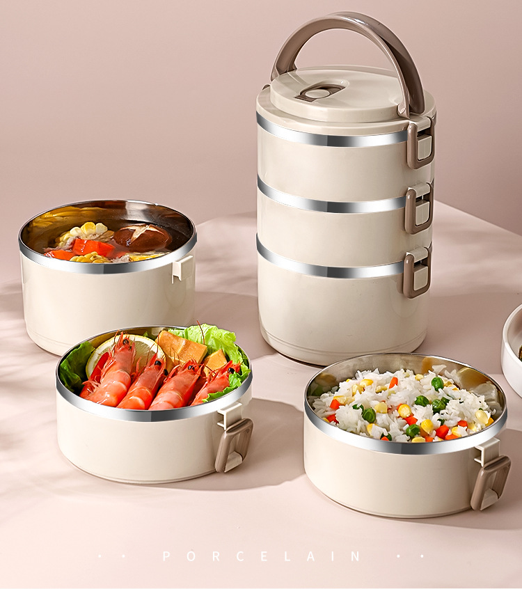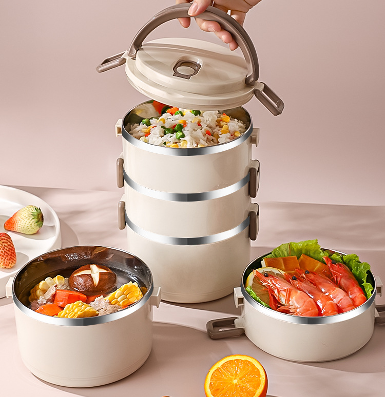 Fiambrera multicapa Fiambrera de aislamiento ampliado de acero inoxidable Fiambrera Fiambrera redonda portátil a prueba de fugas para el hogar para estudiantes adultos